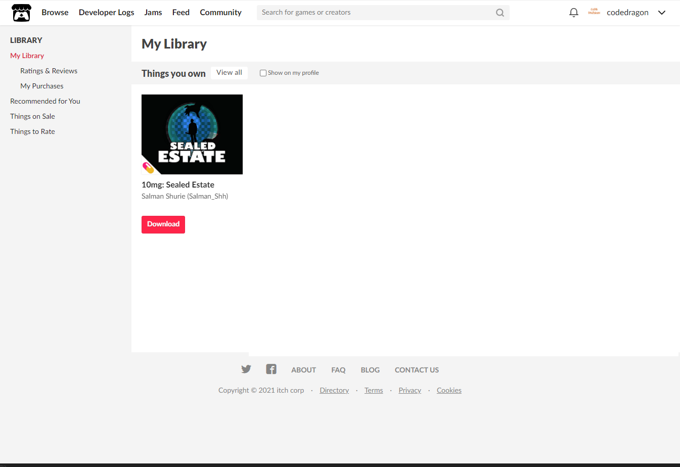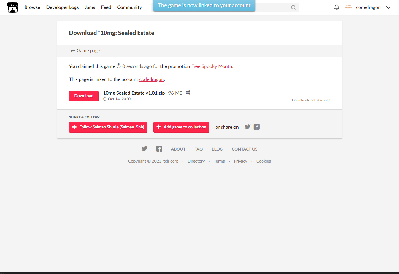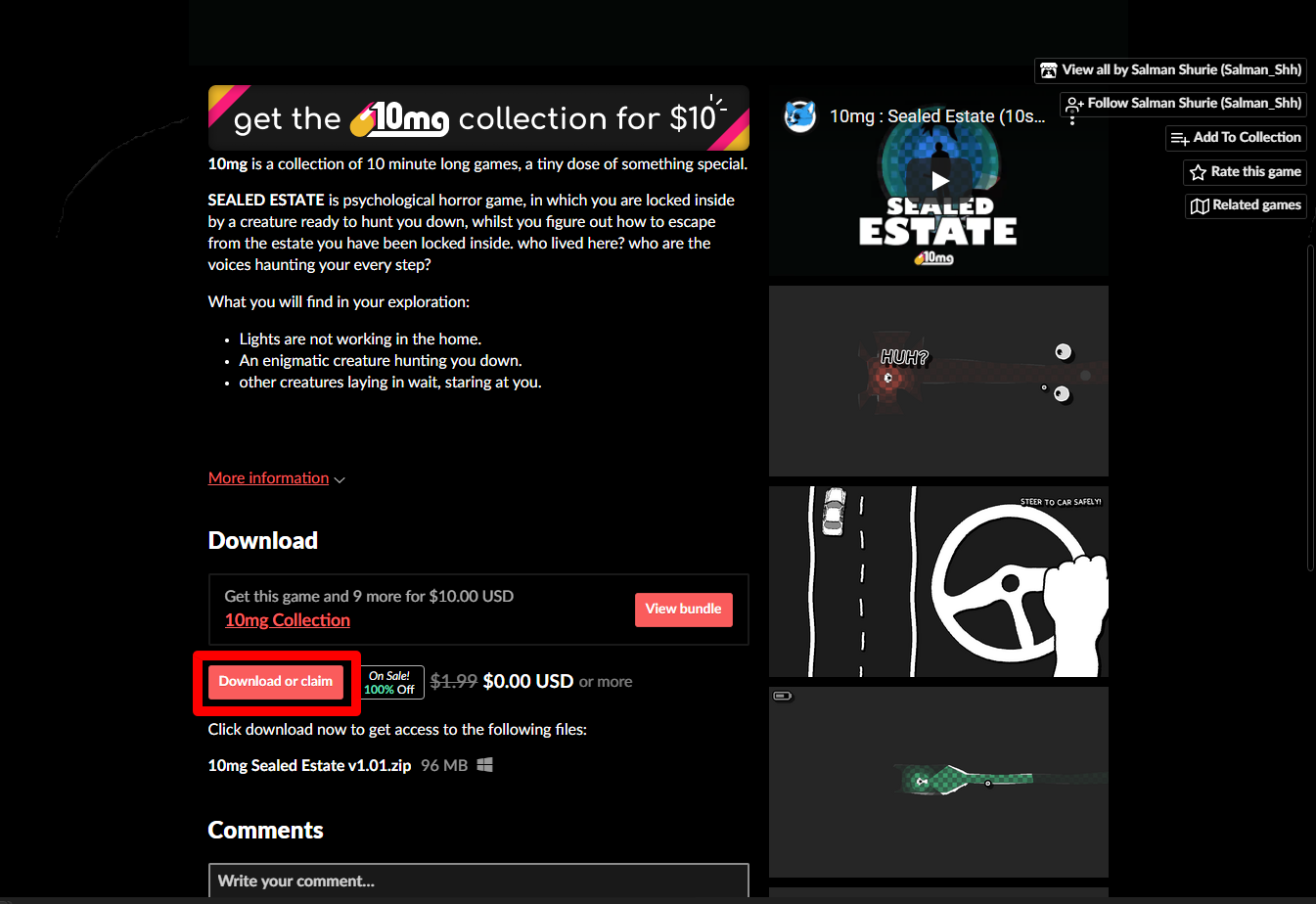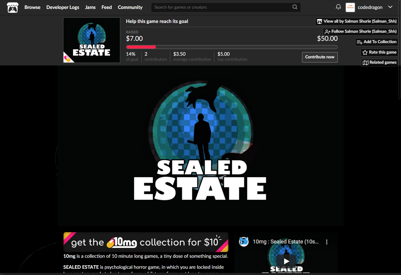 ₩2,200 -> ₩0(Free) 10mg: Sealed Estate 무료로 받기 영구소장 - itch.io 잇치 닷 아이오 한시적 무료 소장하기