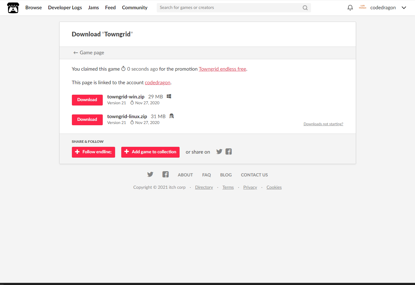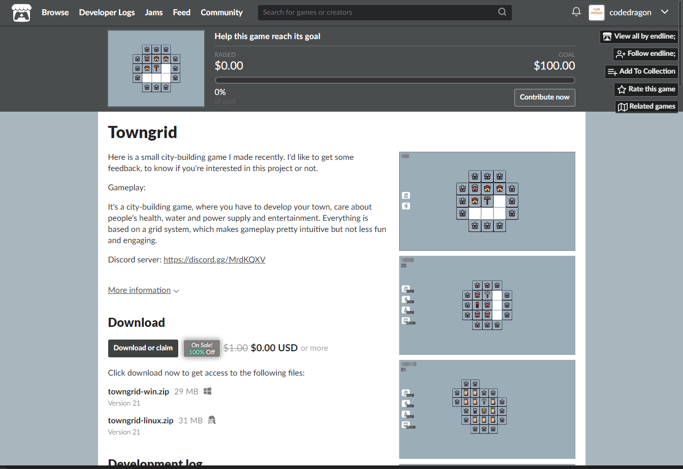 ₩1,178 -> ₩0(Free) Towngrid 타운그리드 무료로 받기 영구소장 - itch.io 잇치 닷 아이오 한시적 무료 소장하기
