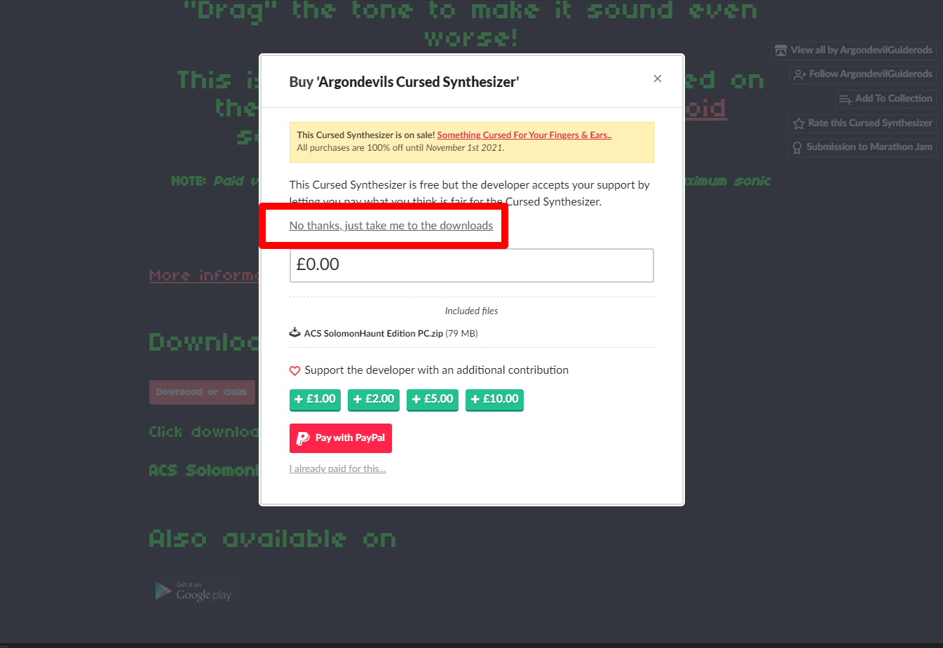 ₩2,003 -> ₩0(Free) Argondevils Cursed Synthesizer 아곤데빌스컬시드 신시사이저 무료로 받기 영구소장 - itch.io 잇치 닷 아이오 한시적 무료 소장하기