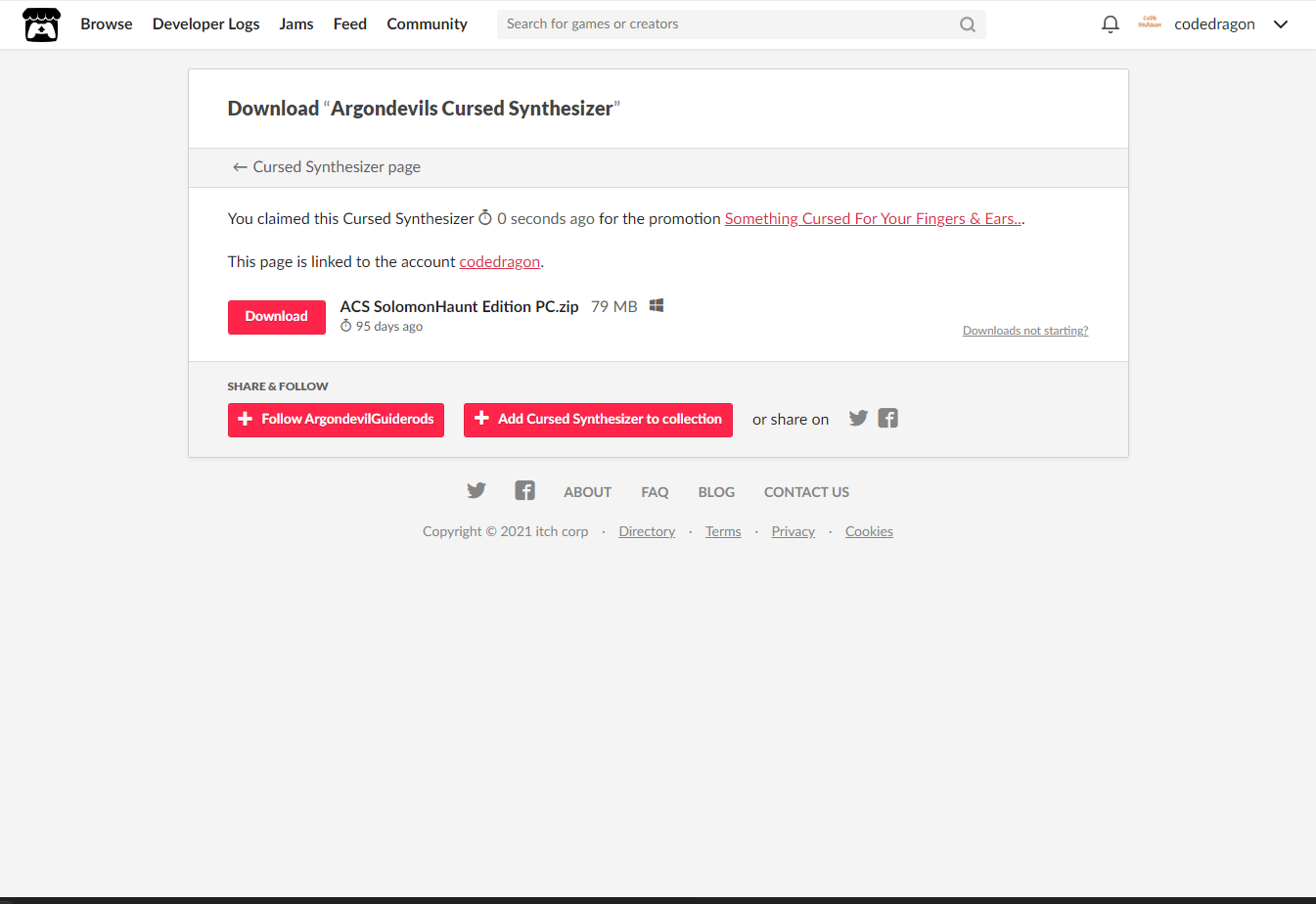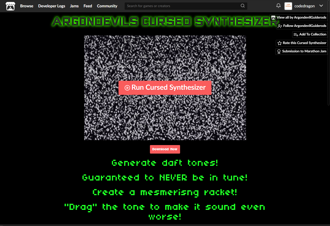 - "Argondevils Cursed Synthesizer" 게임 페이지