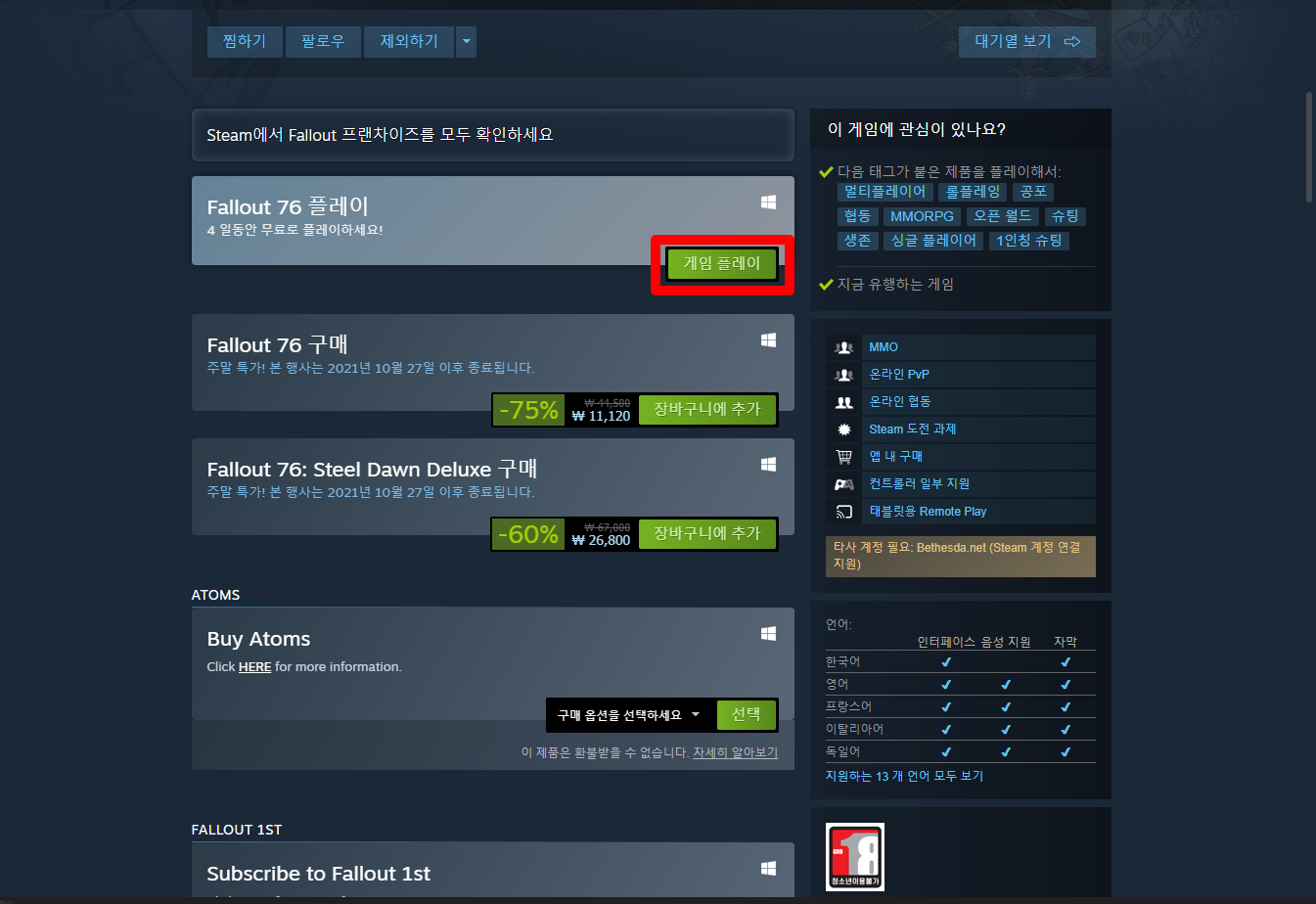 Fallout 76 폴아웃 76 - Steam 스팀 금주 무료 플레이 Play for Free weekend on Steam 스팀