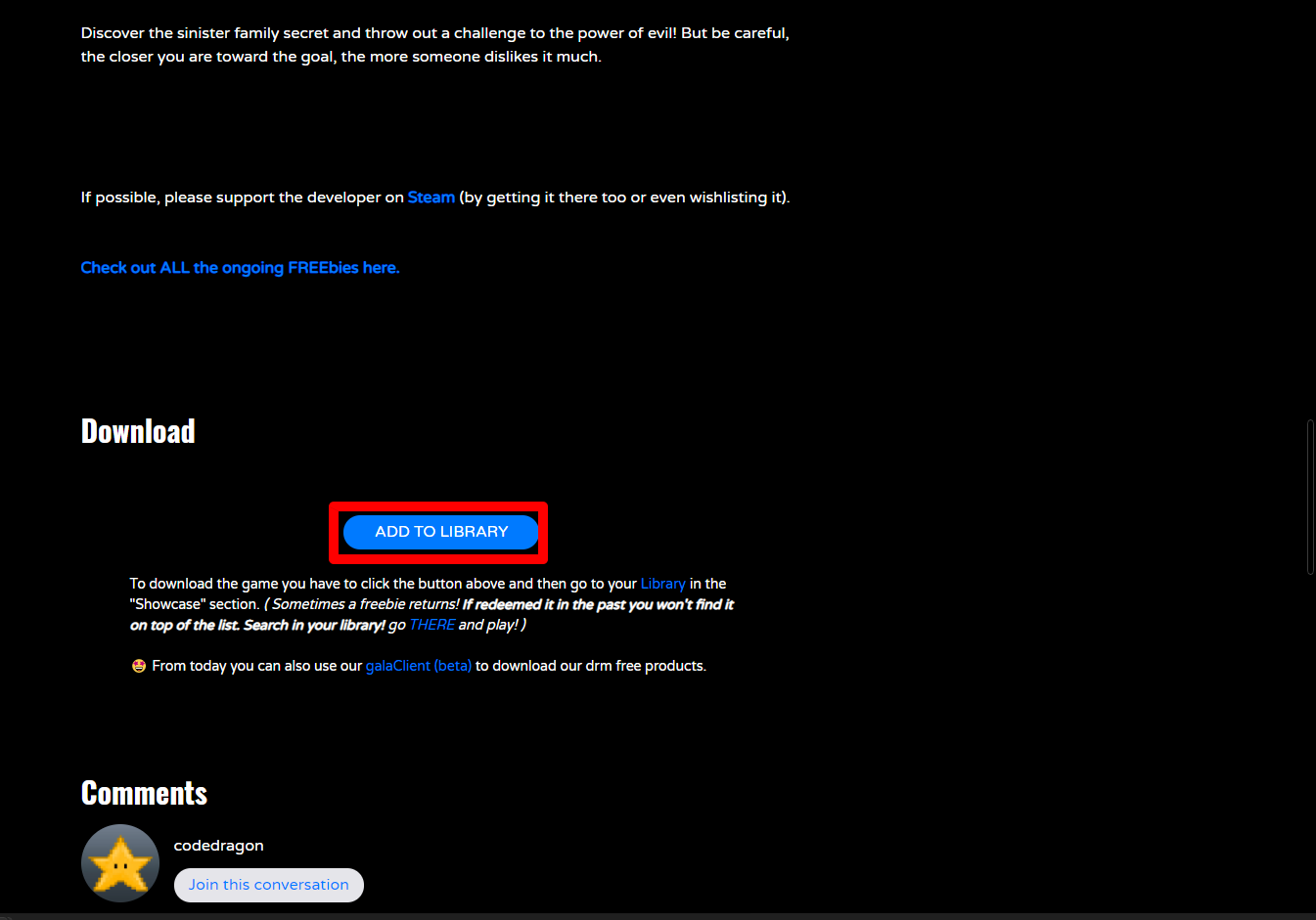 페이지를 내려 [ADD TO LIBRARY]를 클릭합니다.