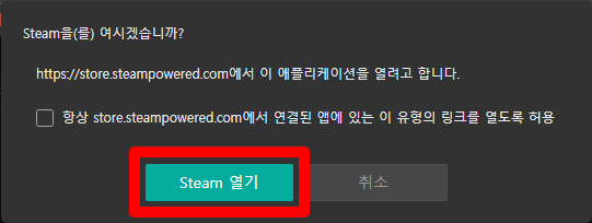 브라우저 상단에 창이 뜨면 [Steam 열기] 버튼을 클릭합니다.