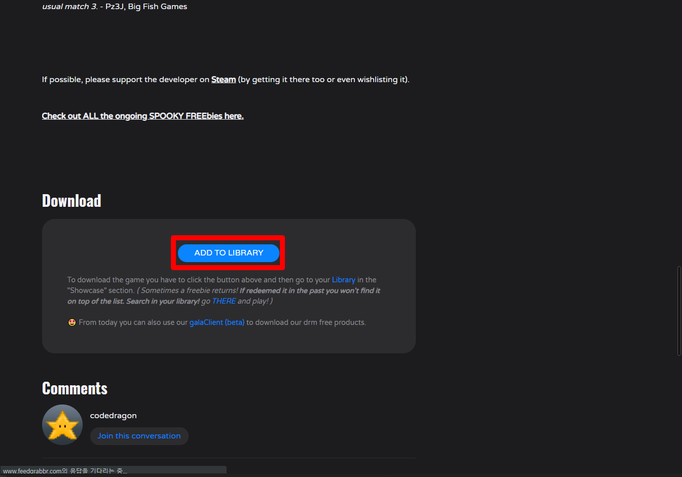 페이지를 내려 [ADD TO LIBRARY]를 클릭합니다.