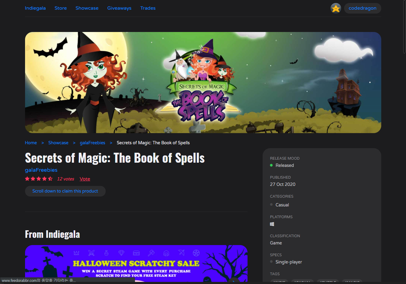 ₩10,500 -> ₩ 0(Free) Secrets of Magic: The Book of Spell 무료 - 인디갈라 indiegala 무료 소장 기회 기간한정 indiegala FREE GAME, Limited time