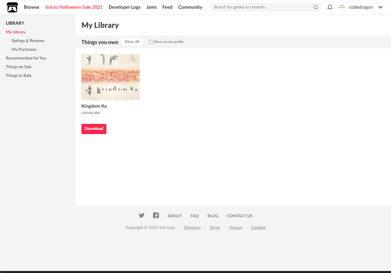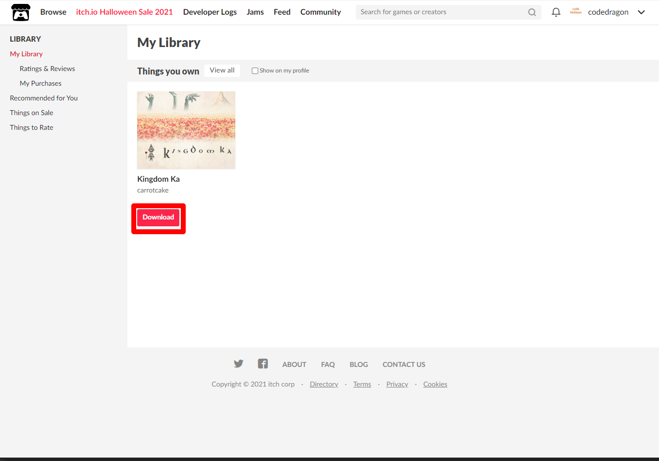 "My Lirary"에서 방금 받은 "Kingdom Ka" 게임 항목을 확인할 수 있습니다.