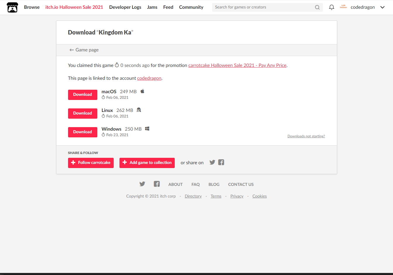 itch.io에서 받은 게임 확인해 설치파일 다운받아 보겠습니다.