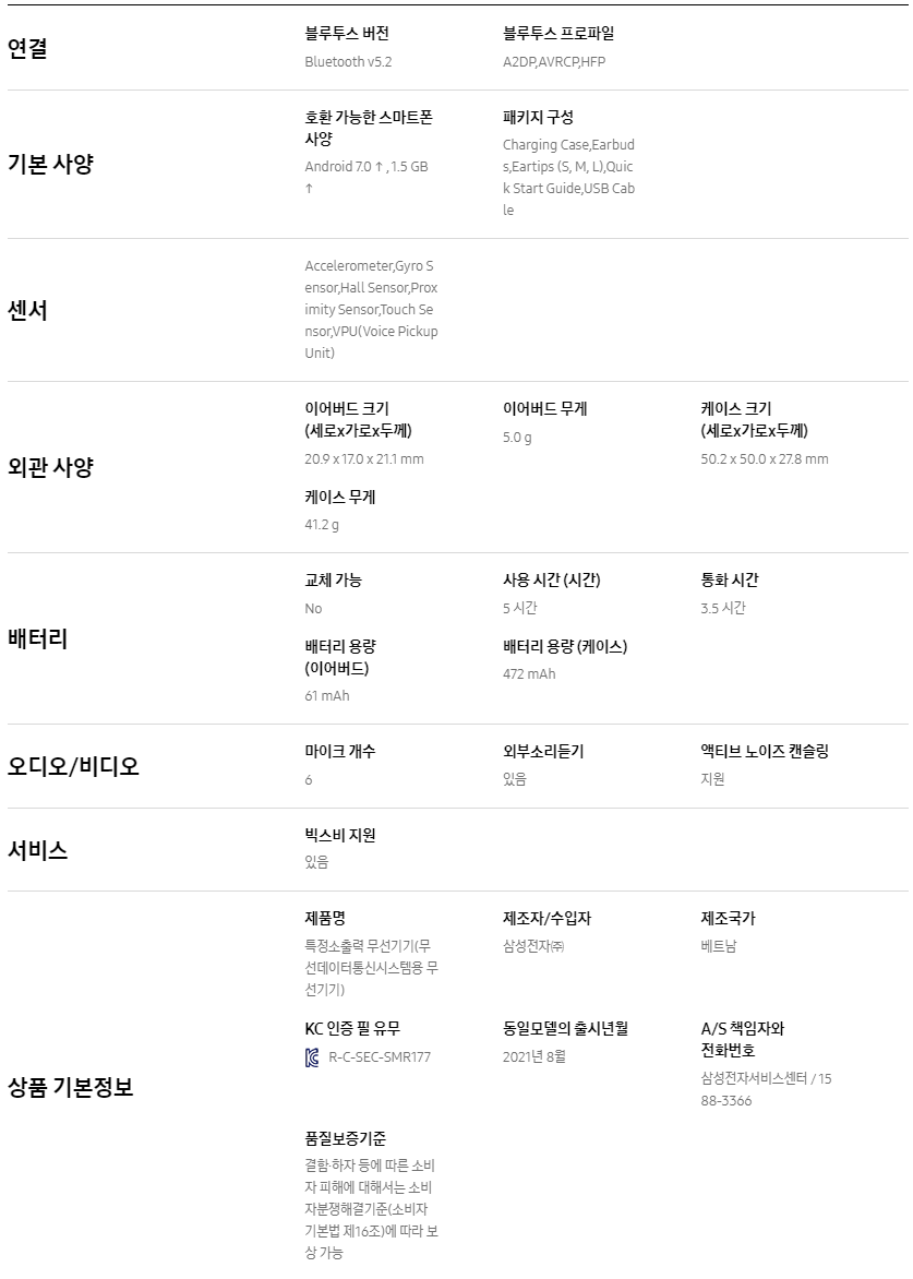 Galaxy Buds2 갤럭시 버즈2 제품 정보