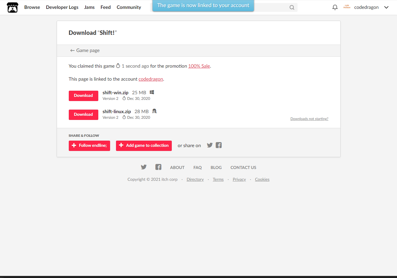 ₩1,171 -> ₩0(Free) Shift! 쉬프트! 무료로 받기 영구소장 - itch.io 잇치 닷 아이오 한시적 무료 소장하기