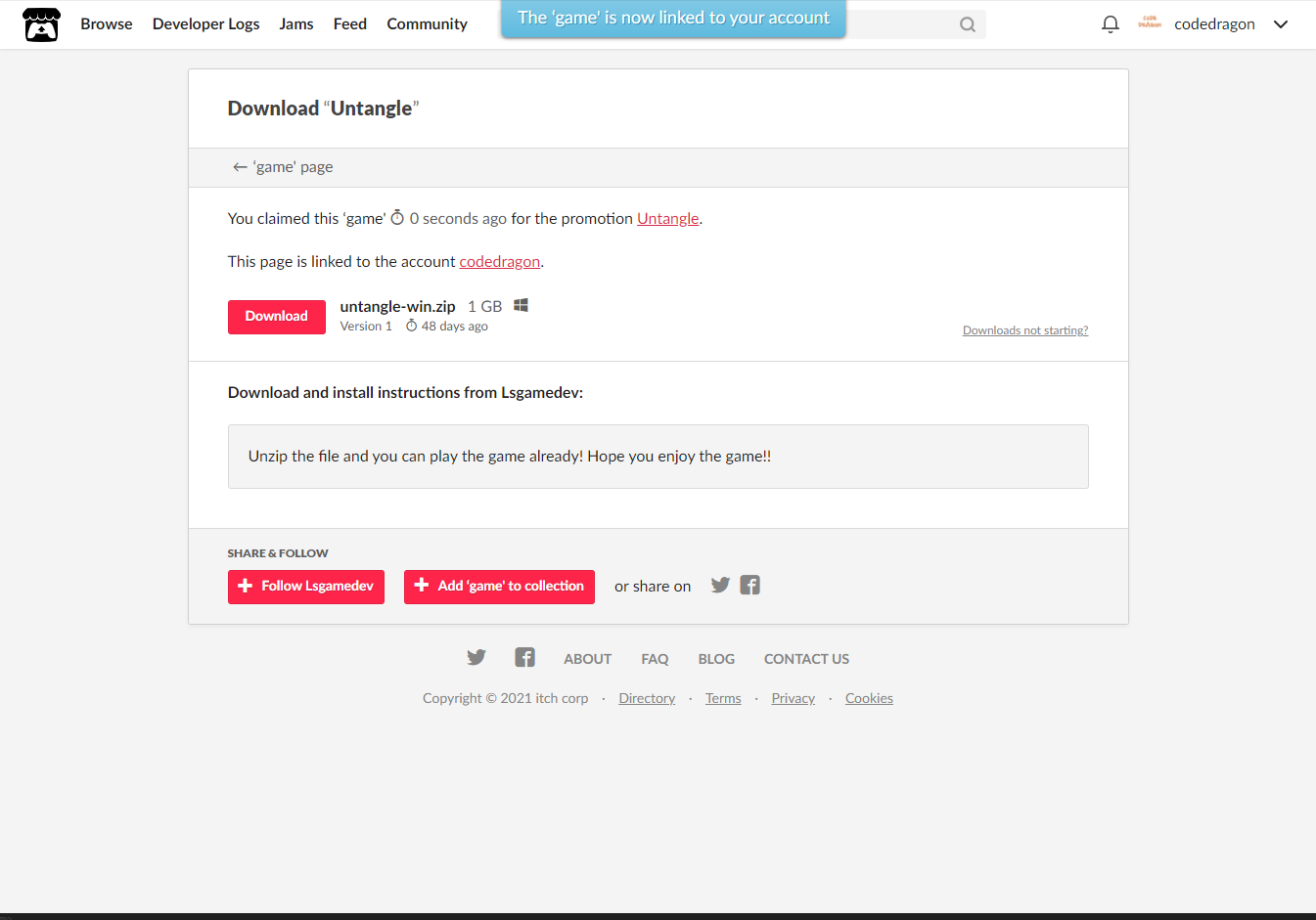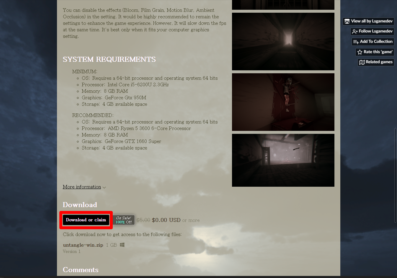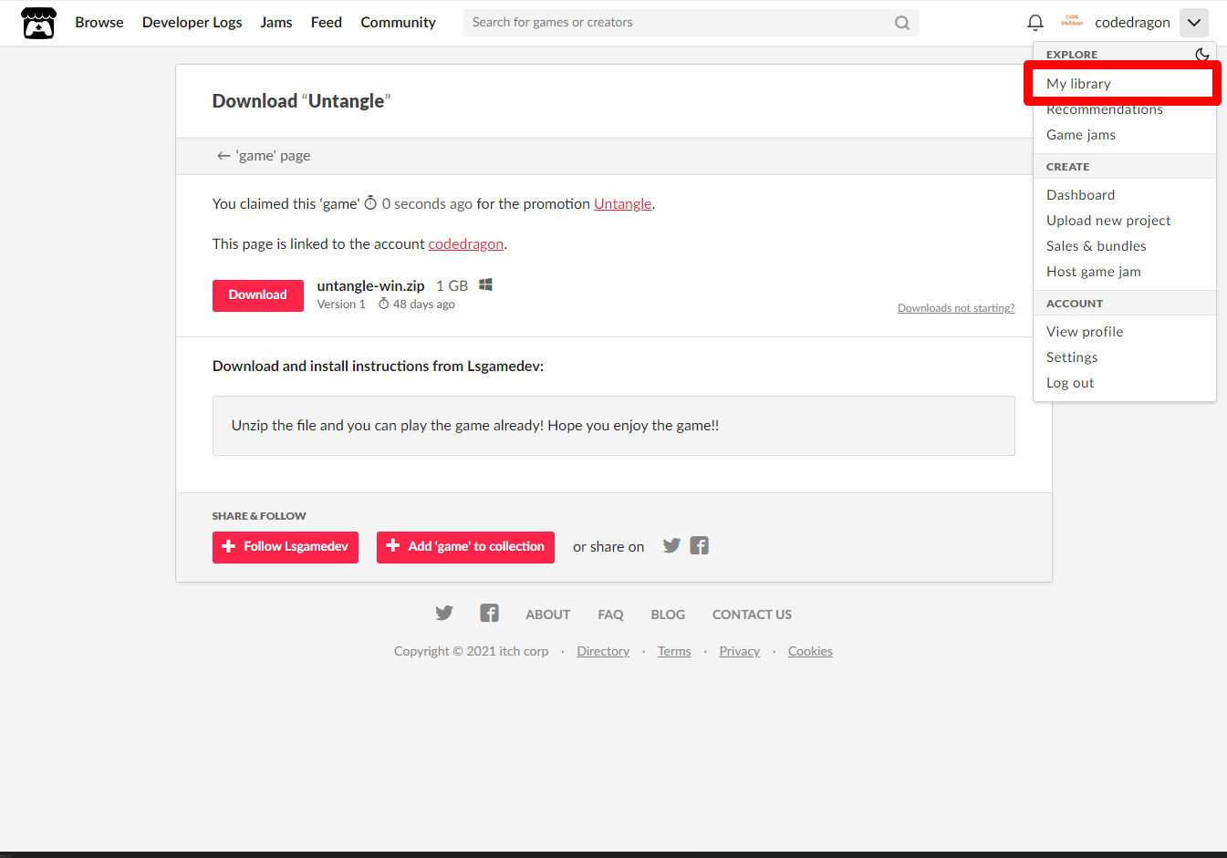 itch.io에서 받은 게임 확인해 설치파일 다운받아 보겠습니다.
