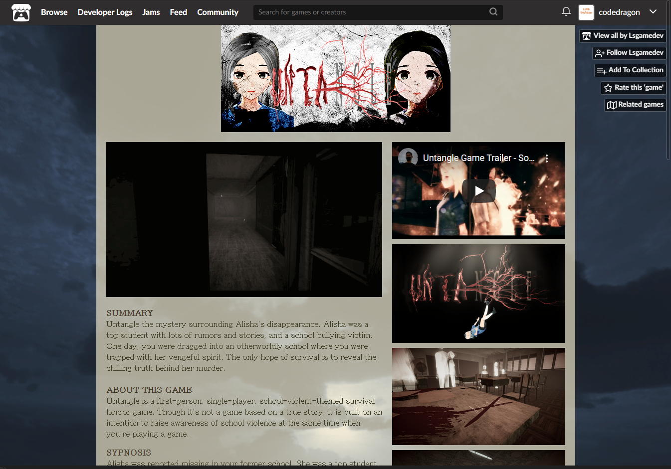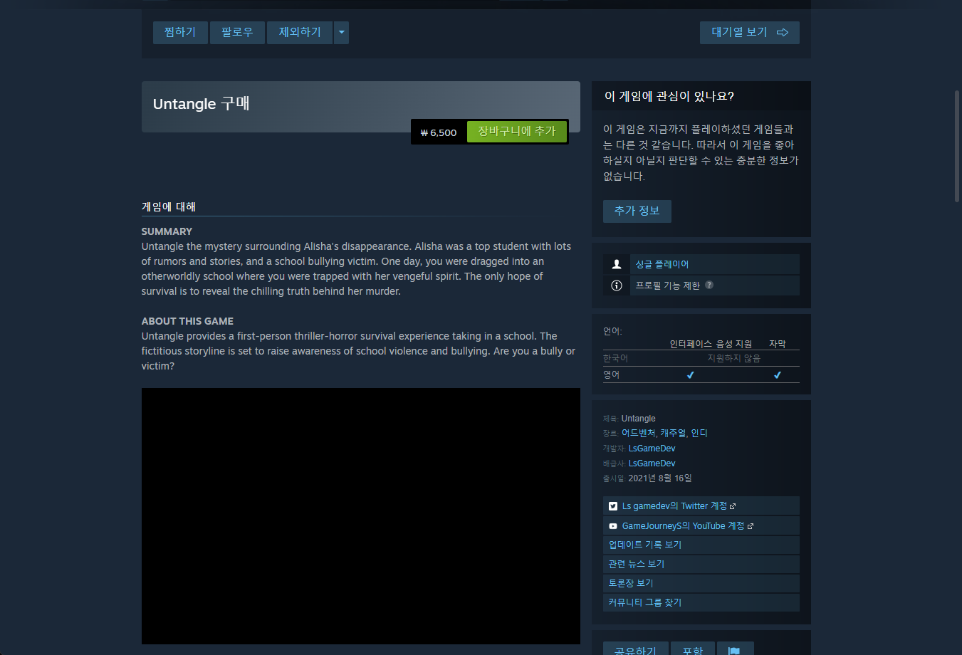 "공포 어드벤처" 게임인 "Untangle" 입니다.