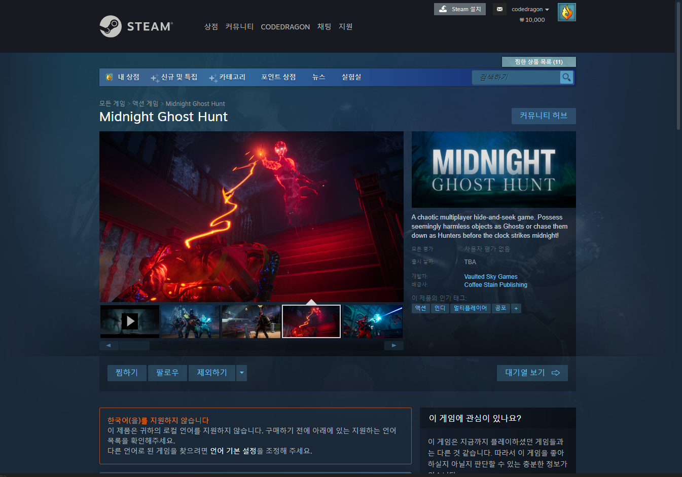 나의 게임 라이브러리에서 등록한 "Midnight Ghost Hunt" 항목을 확인할 수 있습니다