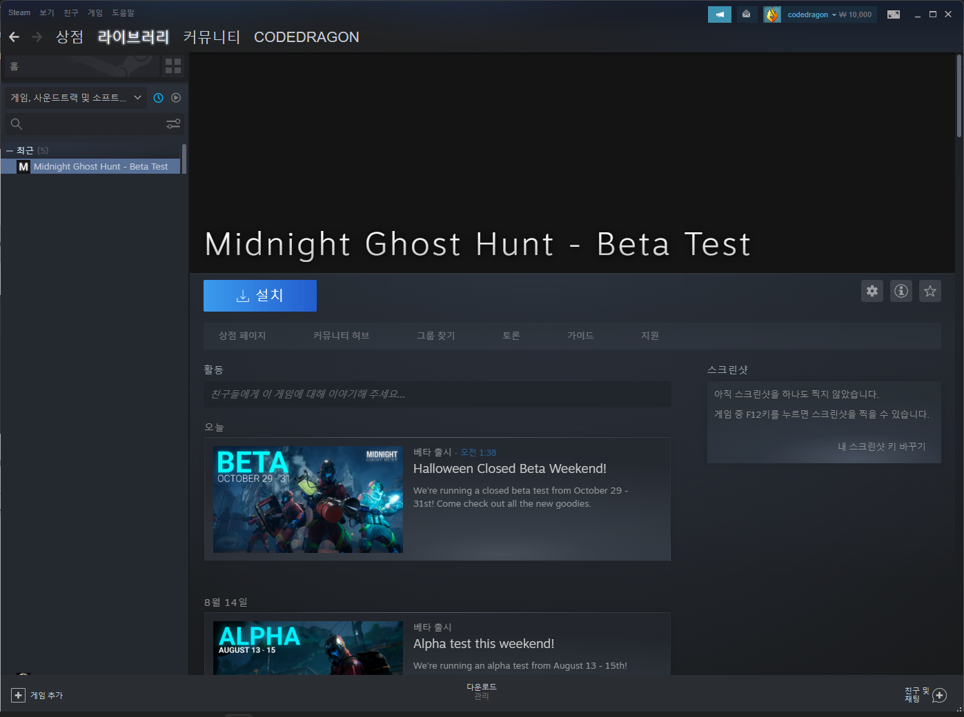 나의 게임 라이브러리에서 등록한 "Midnight Ghost Hunt" 항목을 확인할 수 있습니다