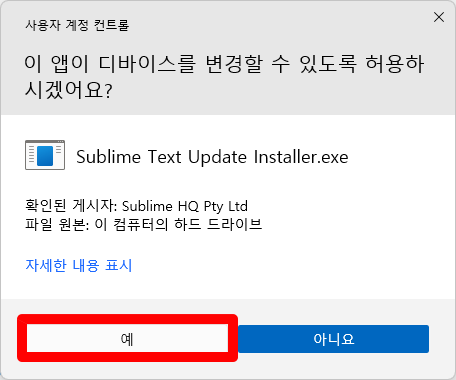 [예] 클릭하면 설치는 빠르게 완료된 후 프로그램이 다시 실행됩니다.