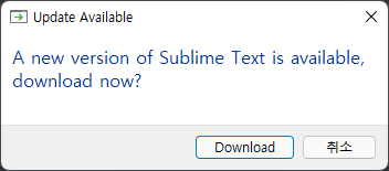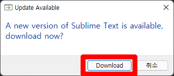 Sublime text 실행하면 새로운 버전이 있고 업데이트가능함을 팝업창으로 알려줍니다.