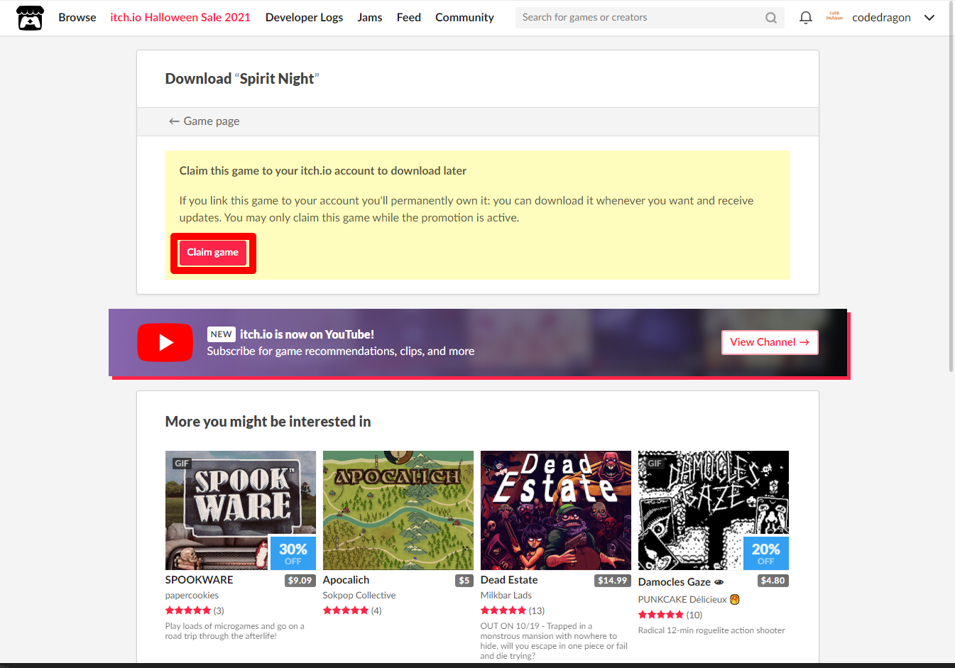[Claim game]을 클릭하면 나의 게임 라이브러리에 추가되고 설치파일을 다운받을 수 있는 페이지로 이동됩니다.