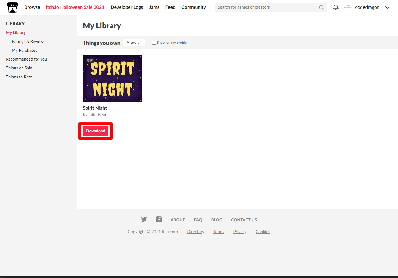 "My Lirary"에서 방금 받은 "Spirit Night" 게임 항목을 확인할 수 있습니다.