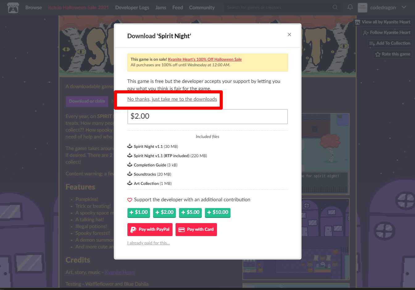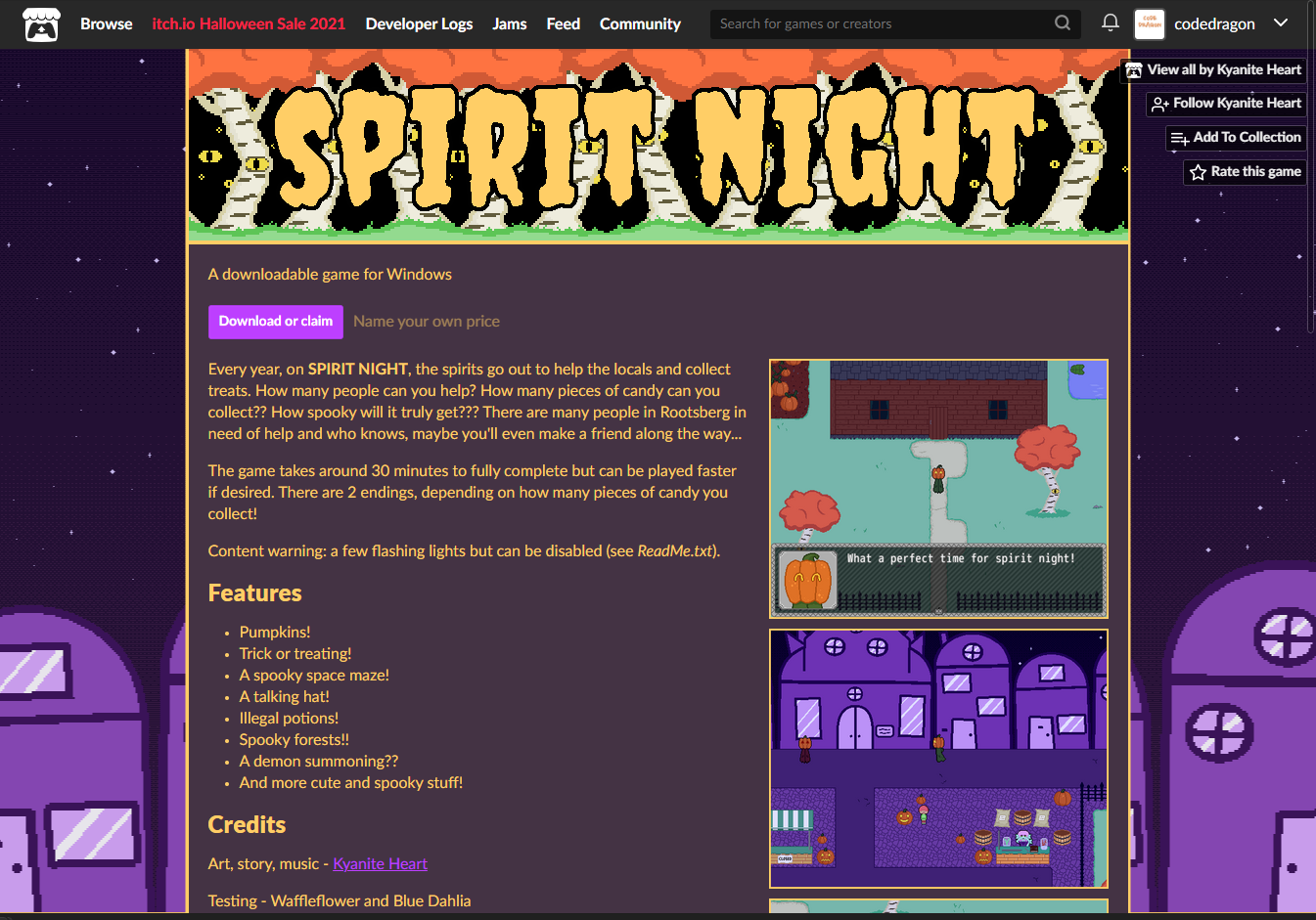 ₩2,341 -> ₩0(Free) Spirit Night 스피리트 나이트 무료로 받기 영구소장 - itch.io 잇치 닷 아이오 한시적 무료 소장하기