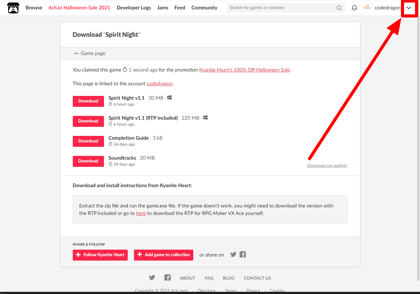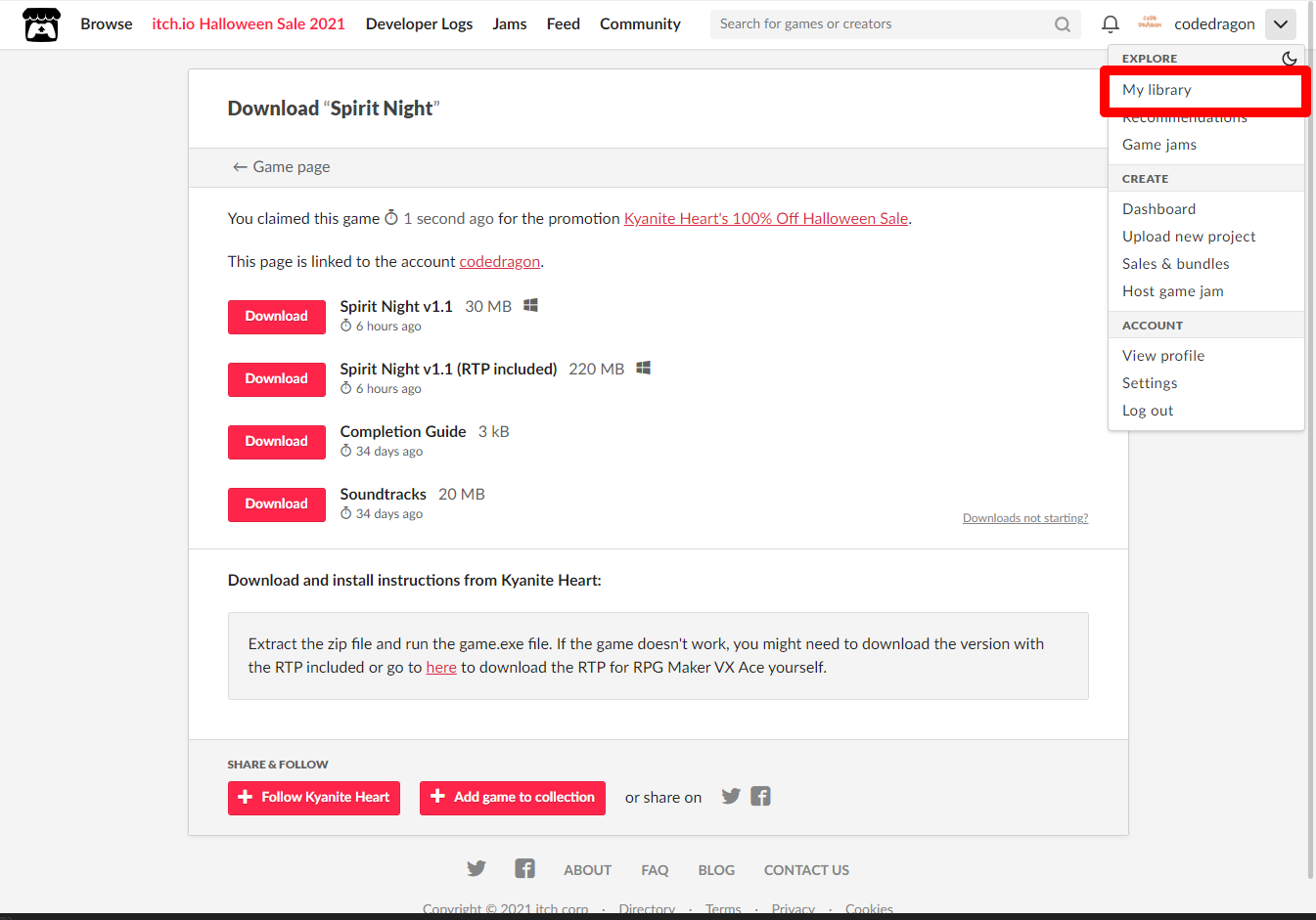itch.io에서 받은 게임 확인해 설치파일 다운받아 보겠습니다.