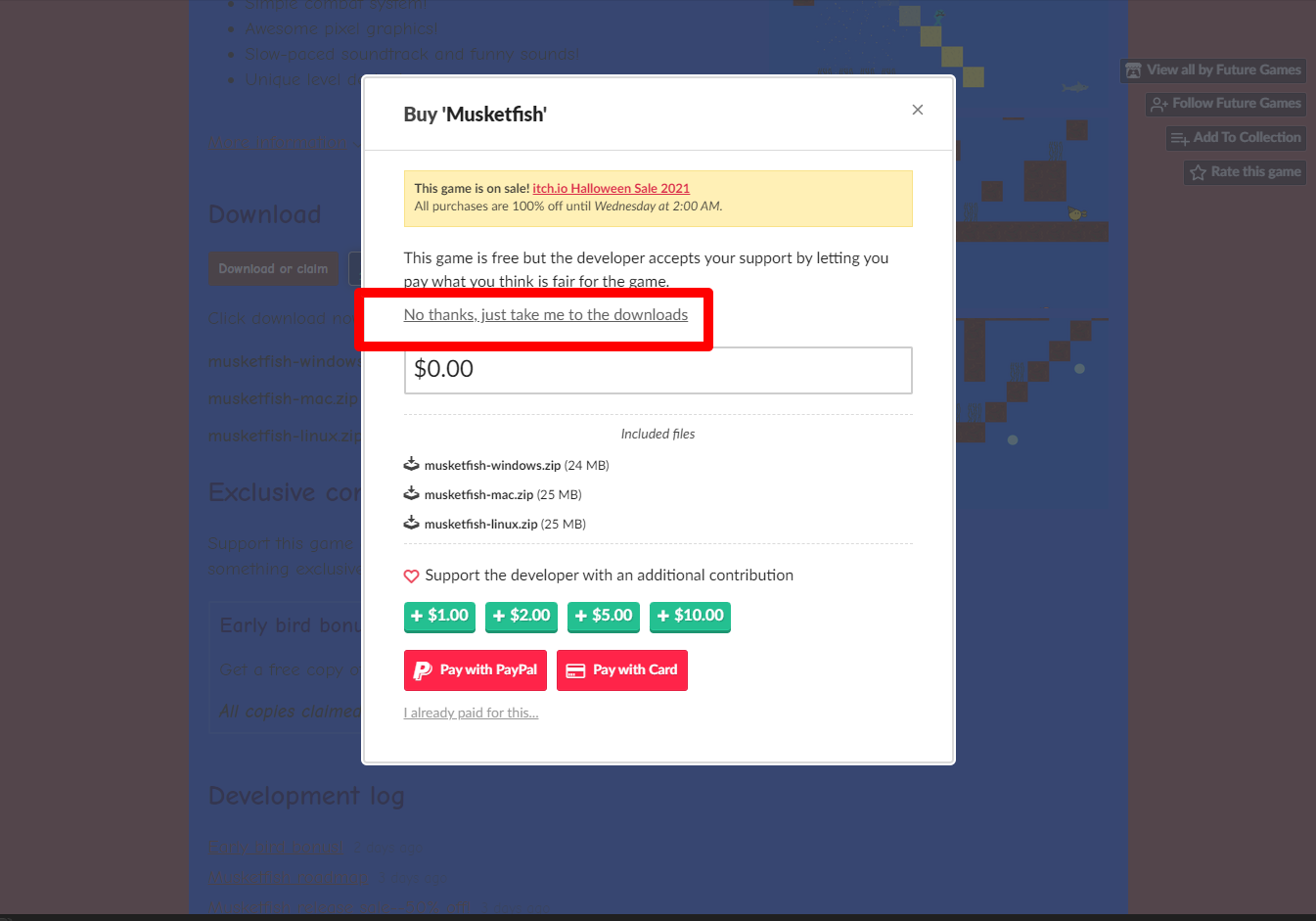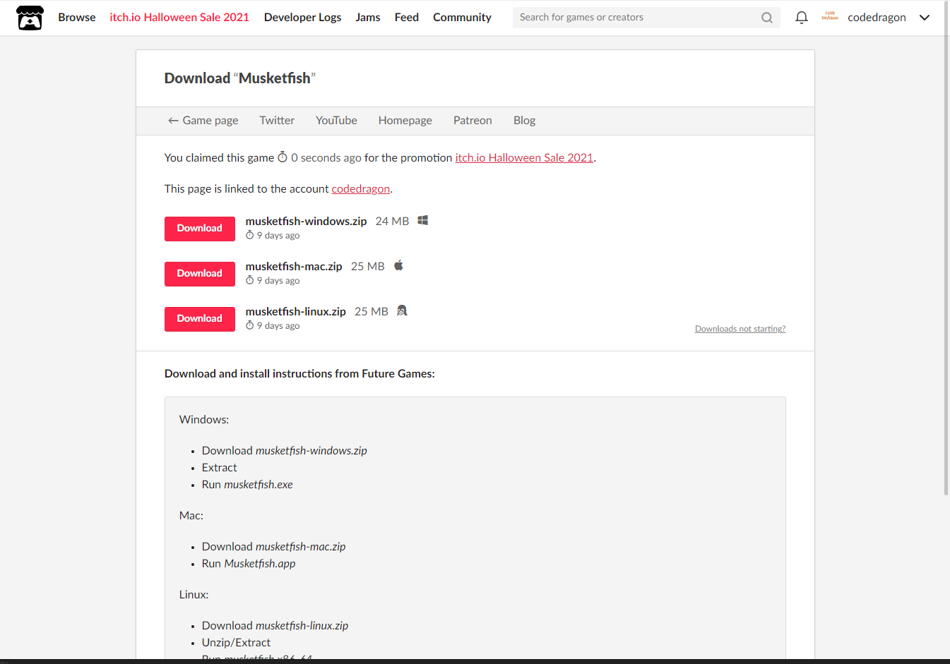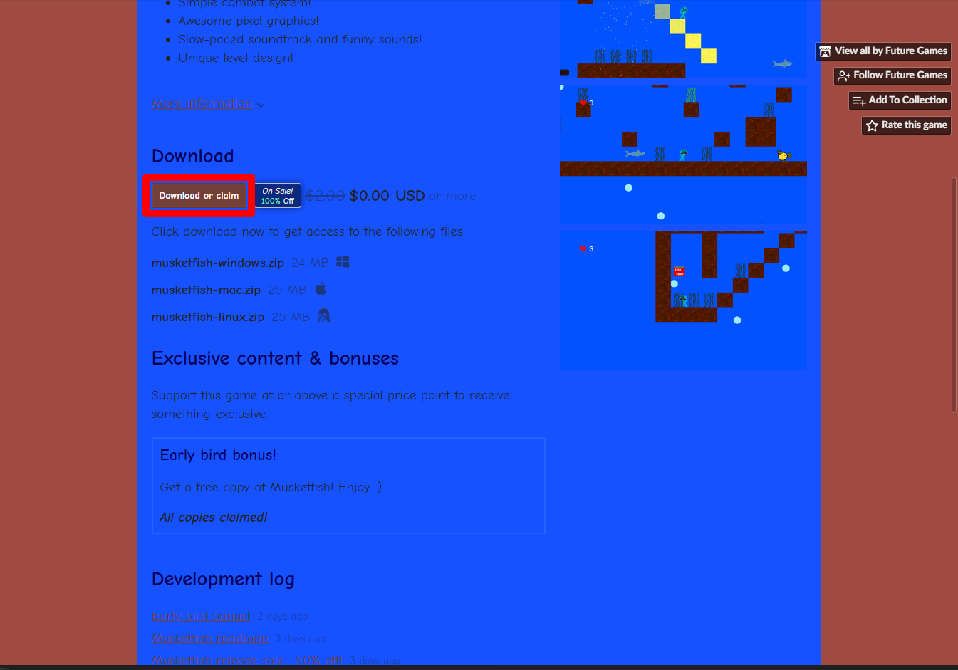 "Musketfish" 해당 항목에 있는 [Download] 버튼을 클릭하면 게임의 설치파일을 다운받을 수 있습니다.