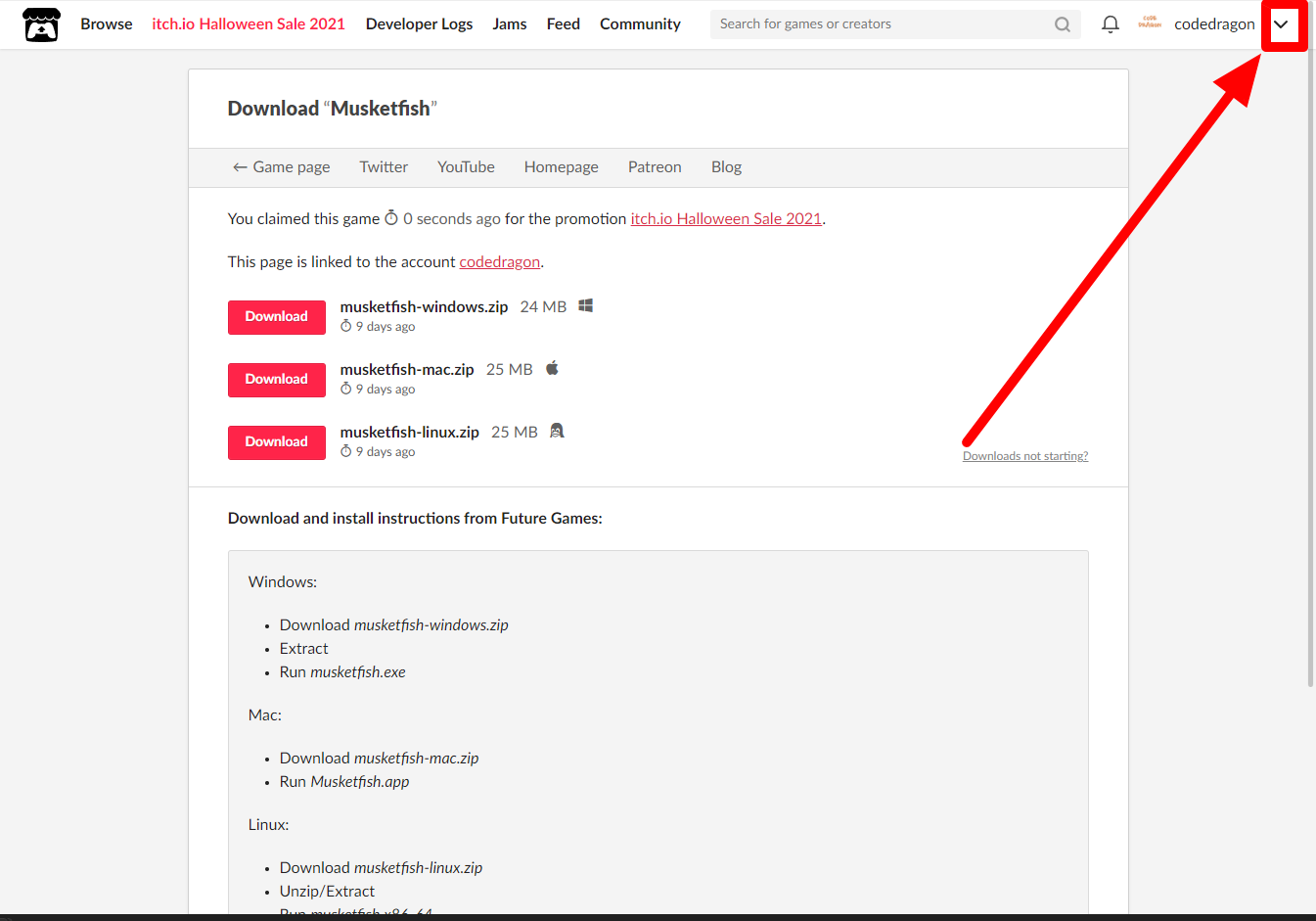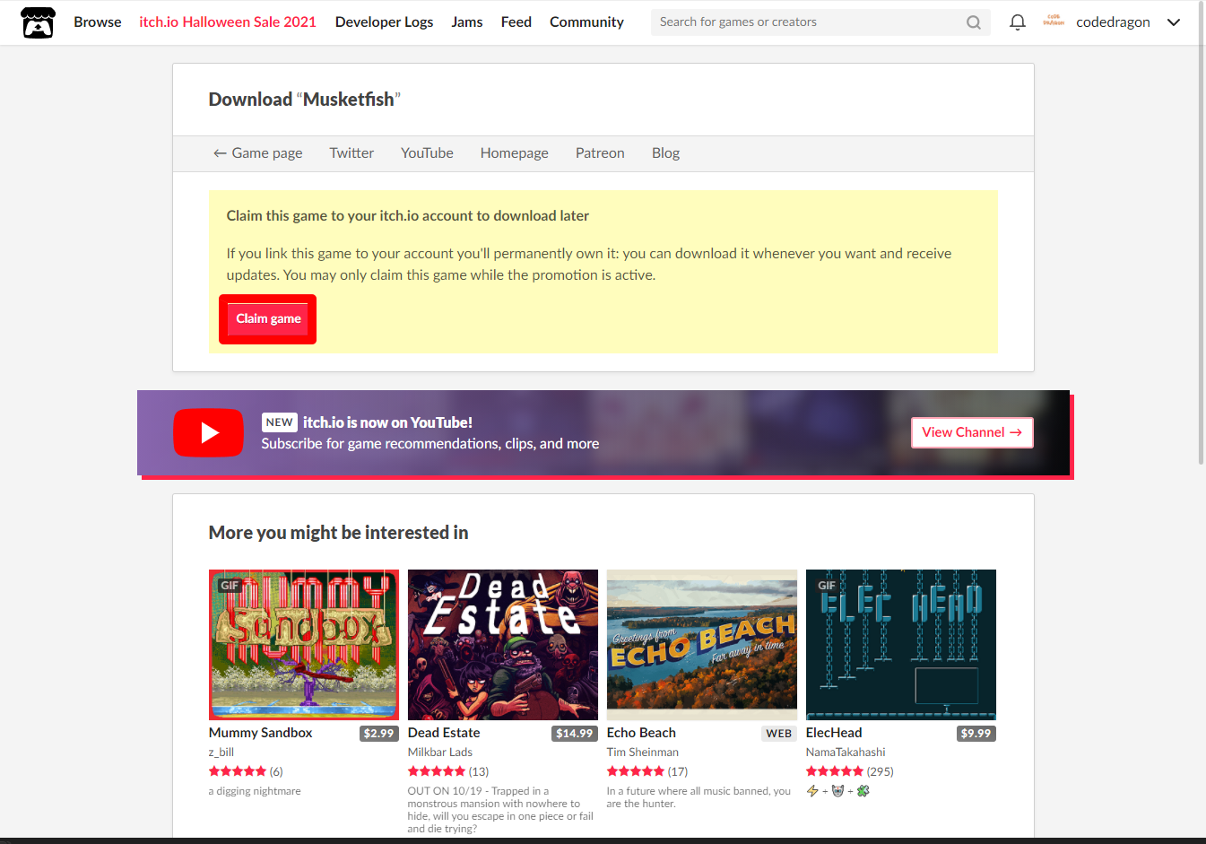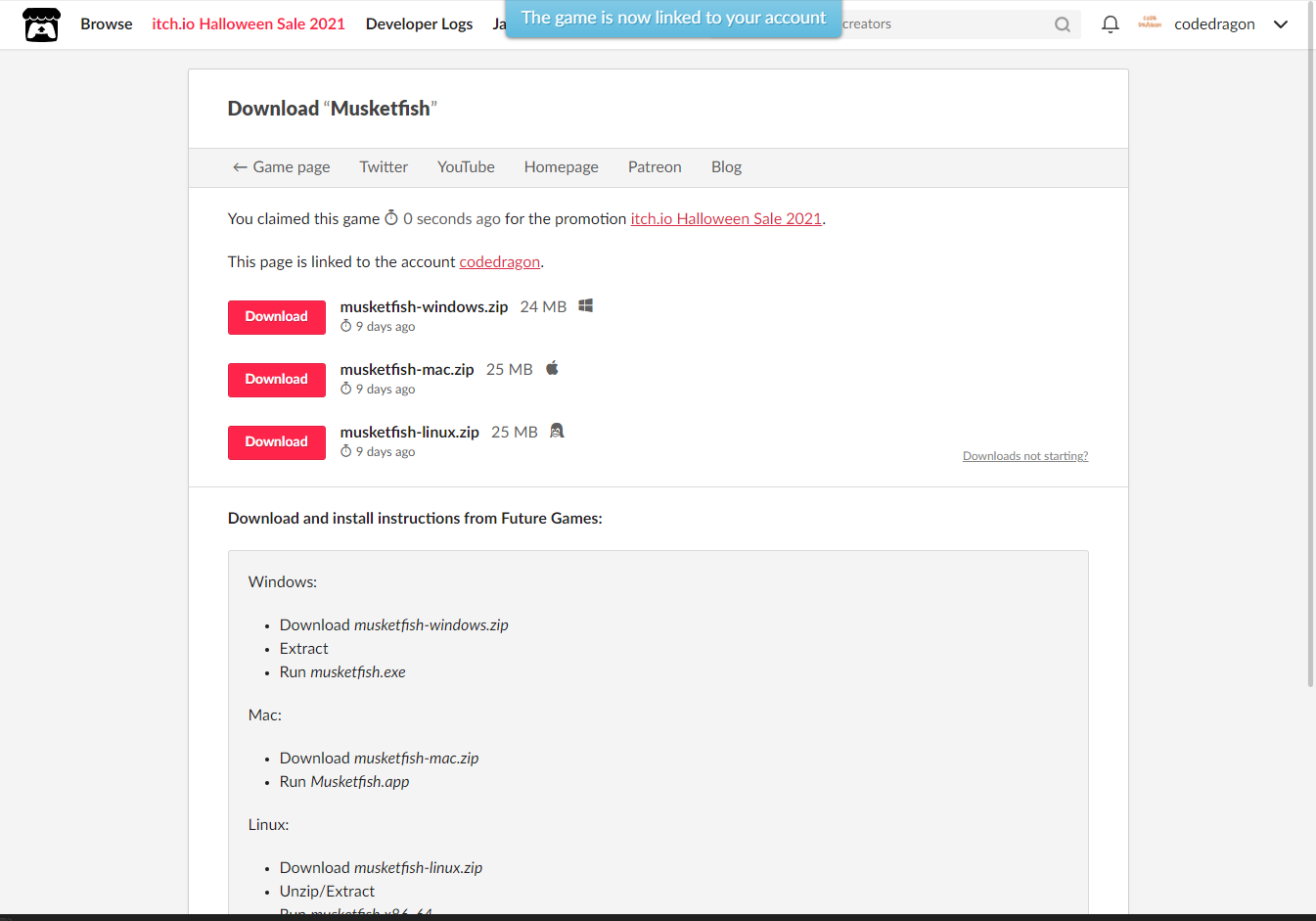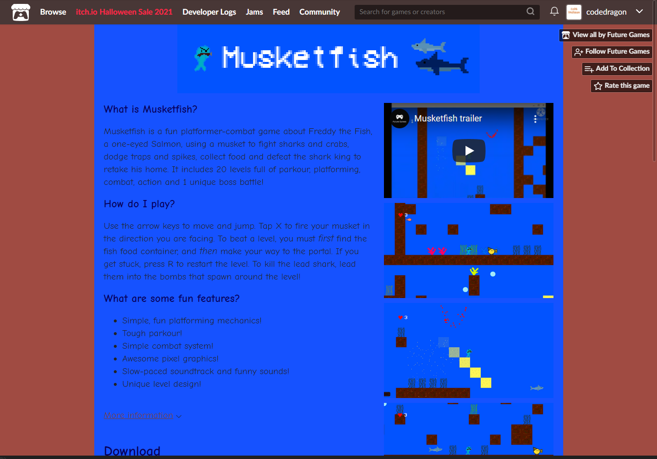"Musketfish" 해당 항목에 있는 [Download] 버튼을 클릭하면 게임의 설치파일을 다운받을 수 있습니다.
