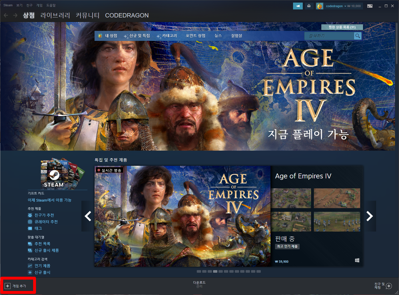 좌측하단의 [+ 게임추가] 클릭합니다.