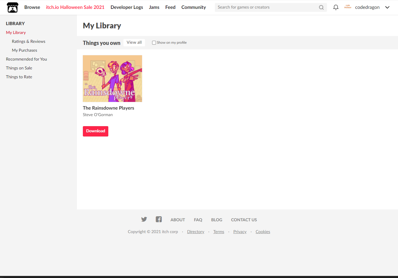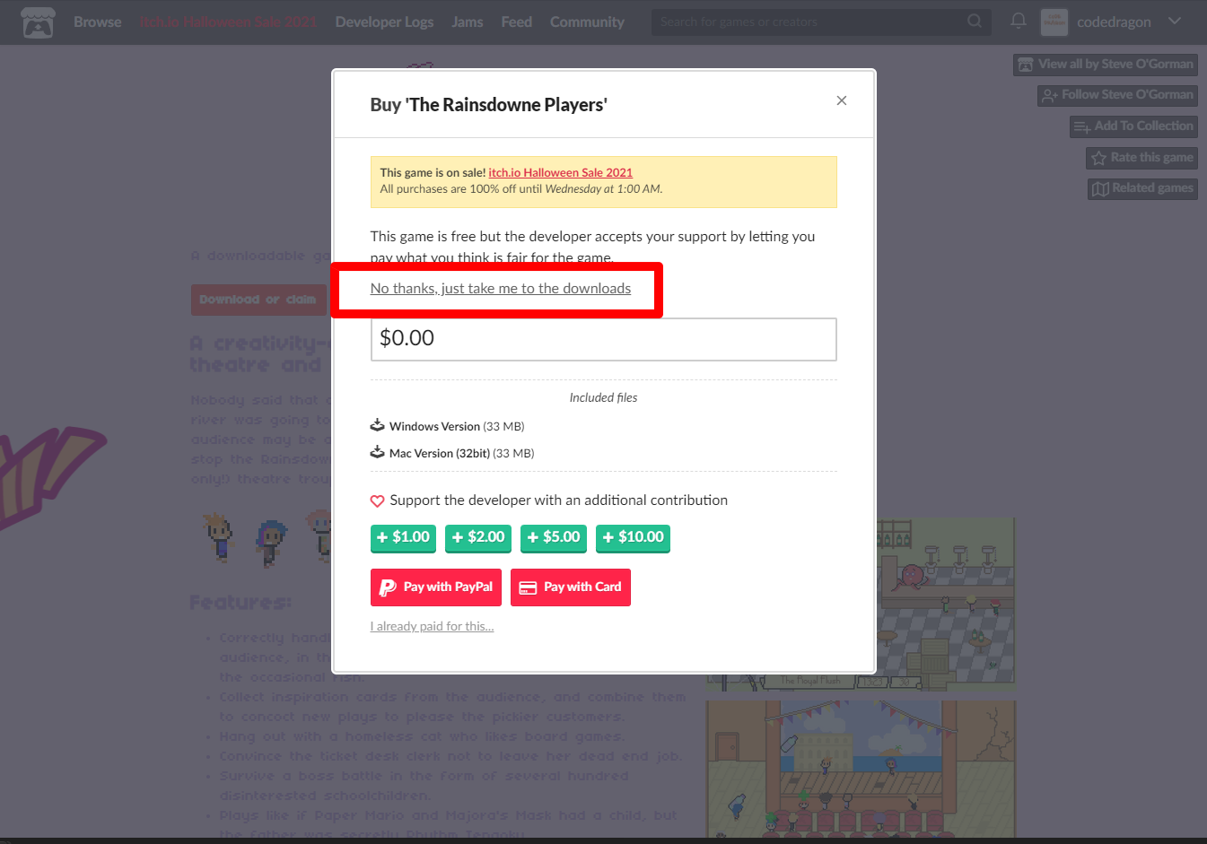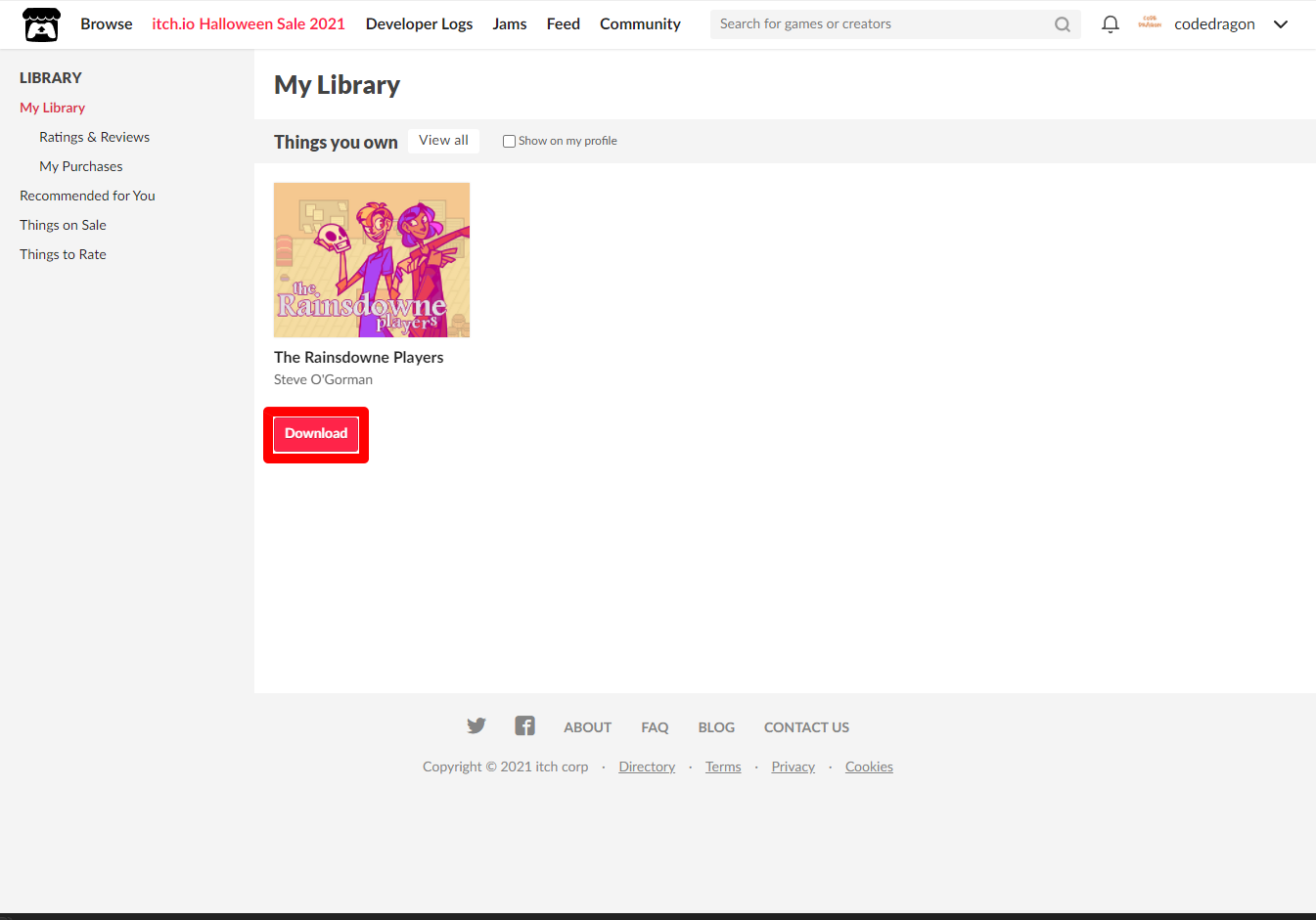 "The Rainsdowne Players" 해당 항목에 있는 [Download] 버튼을 클릭하면 게임의 설치파일을 다운받을 수 있습니다.