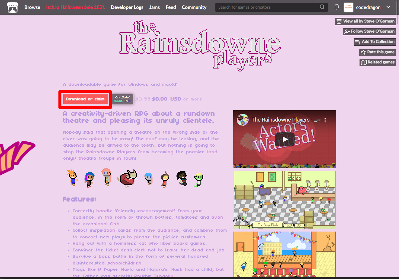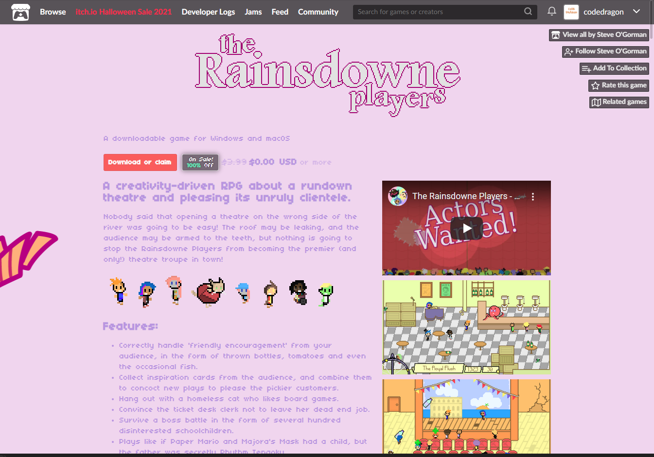 ₩4,670 -> ₩0(Free) The Rainsdowne Players 레인즈다운 플레이어스 무료로 받기 영구소장 - itch.io 잇치 닷 아이오 한시적 무료 소장하기