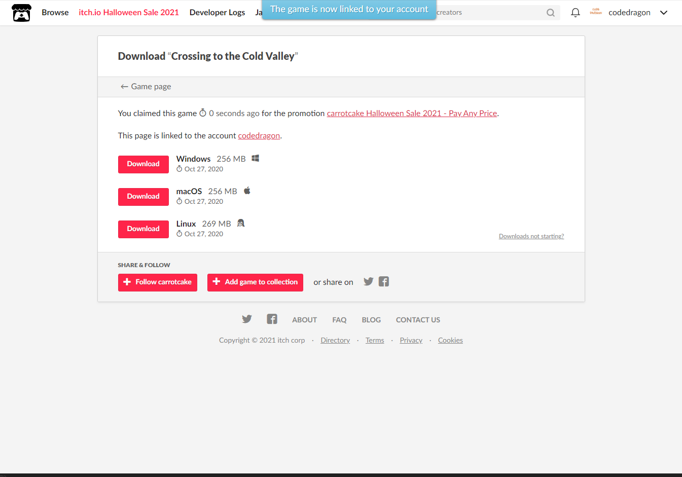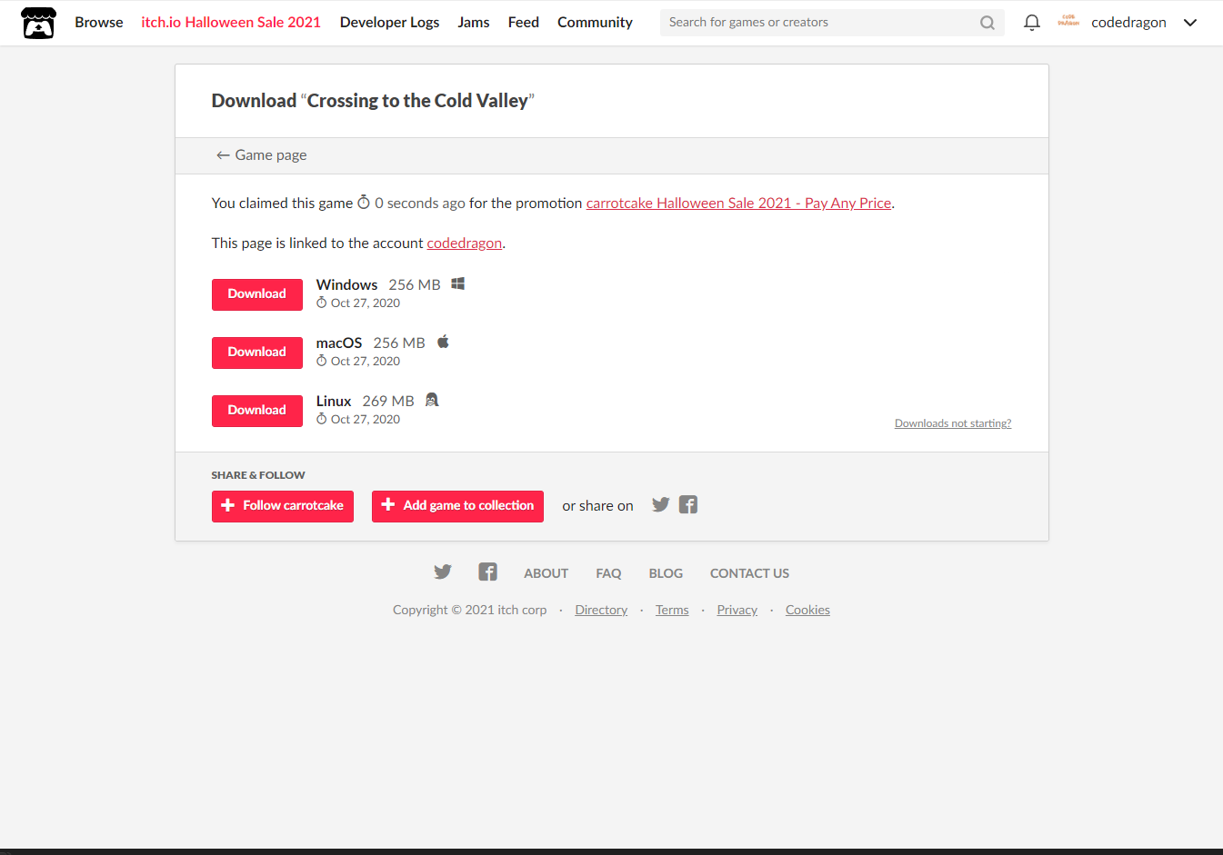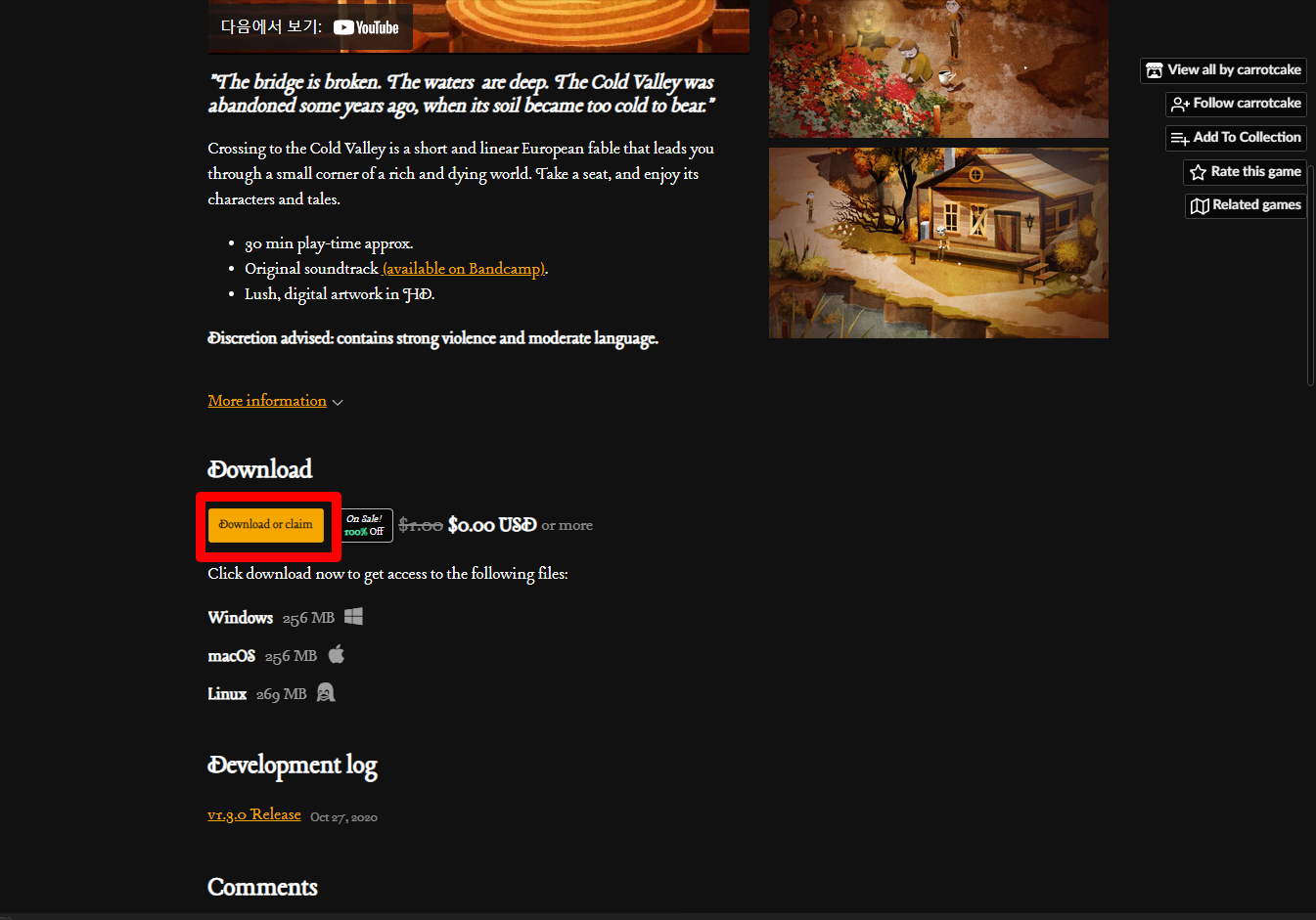 "Crossing to the Cold Valley" 해당 항목에 있는 [Download] 버튼을 클릭하면 게임의 설치파일을 다운받을 수 있습니다.