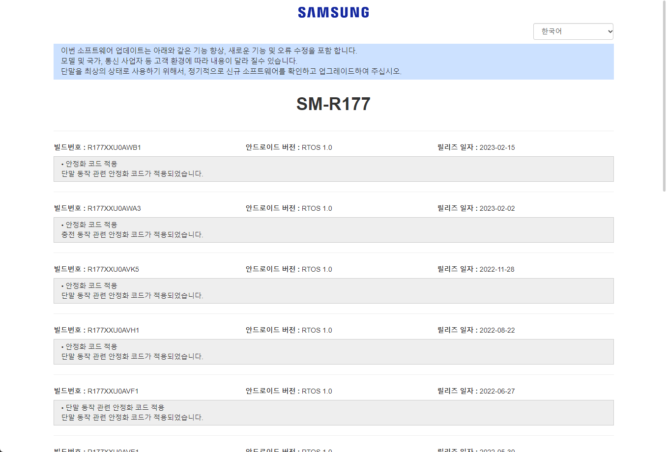 빌드번호 : R177XXU0AWB1 릴리즈 일자 : 2023-02-15