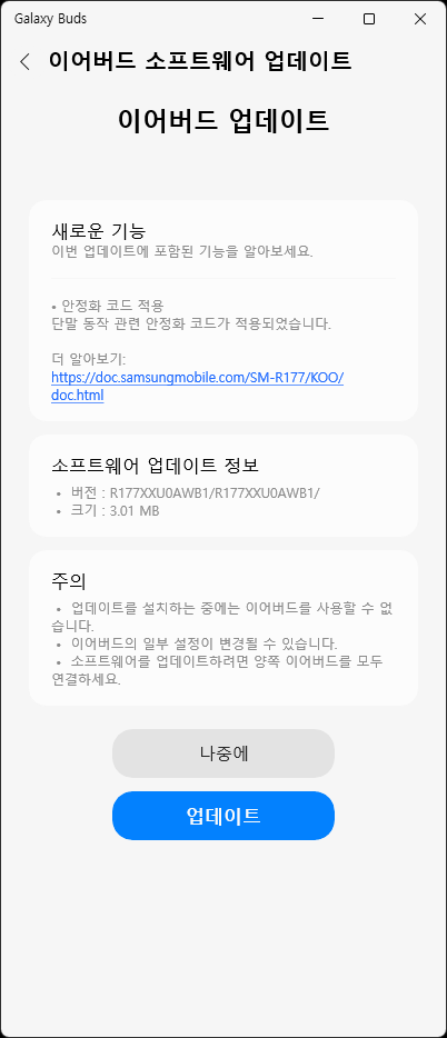 Galaxy Buds 윈도우 앱으로 이어버드 업데이트하기, 갤럭시 버즈 Buds Live/Pro/Buds2 - Windows 앱