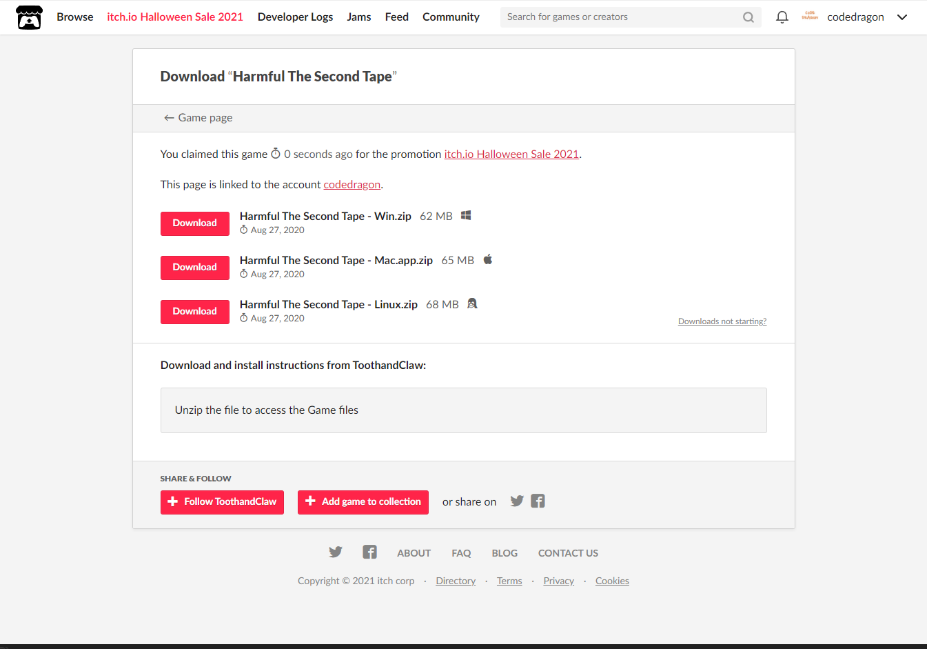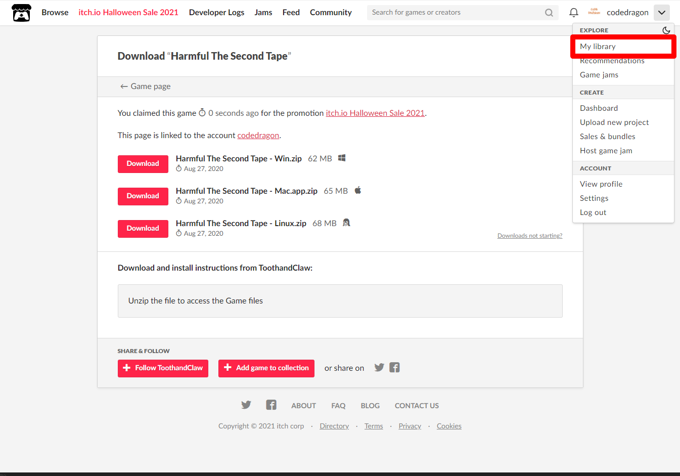 itch.io에서 받은 게임 확인해 설치파일 다운받아 보겠습니다.