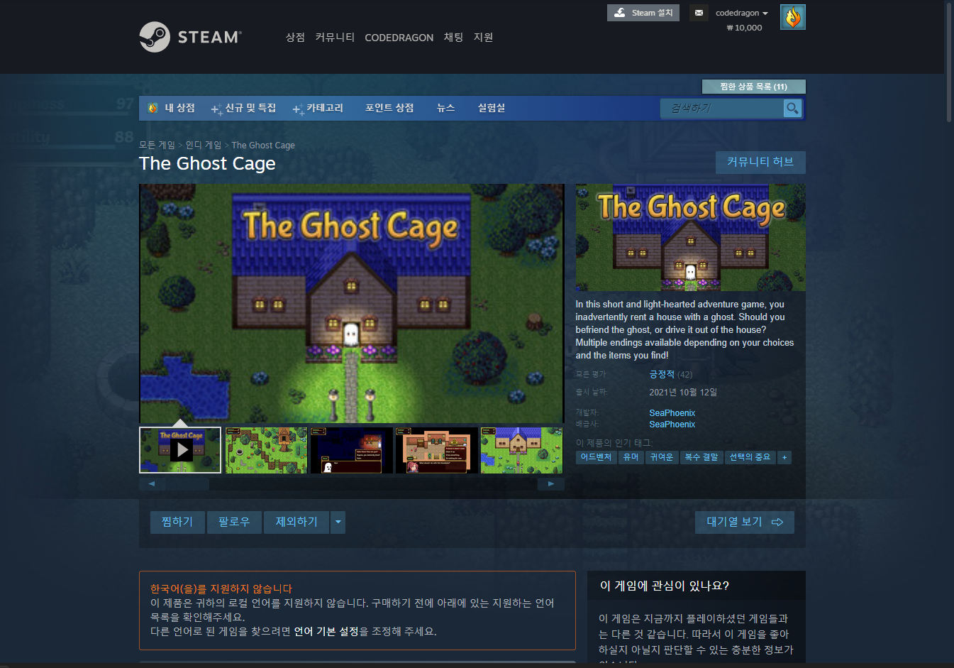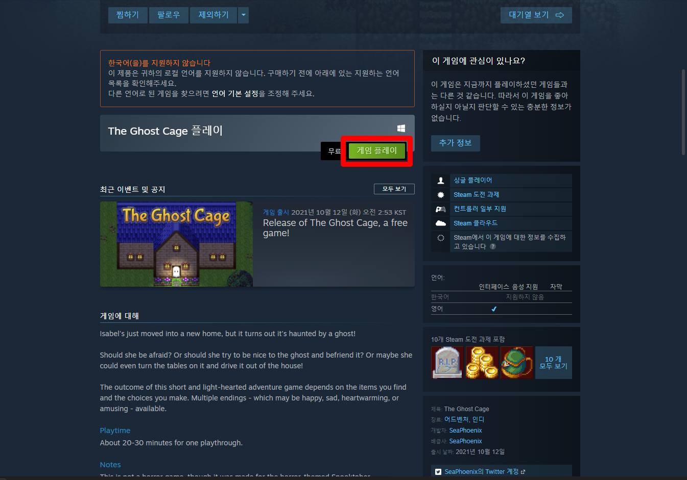 "The Ghost Cage" 스팀 페이지 입니다.