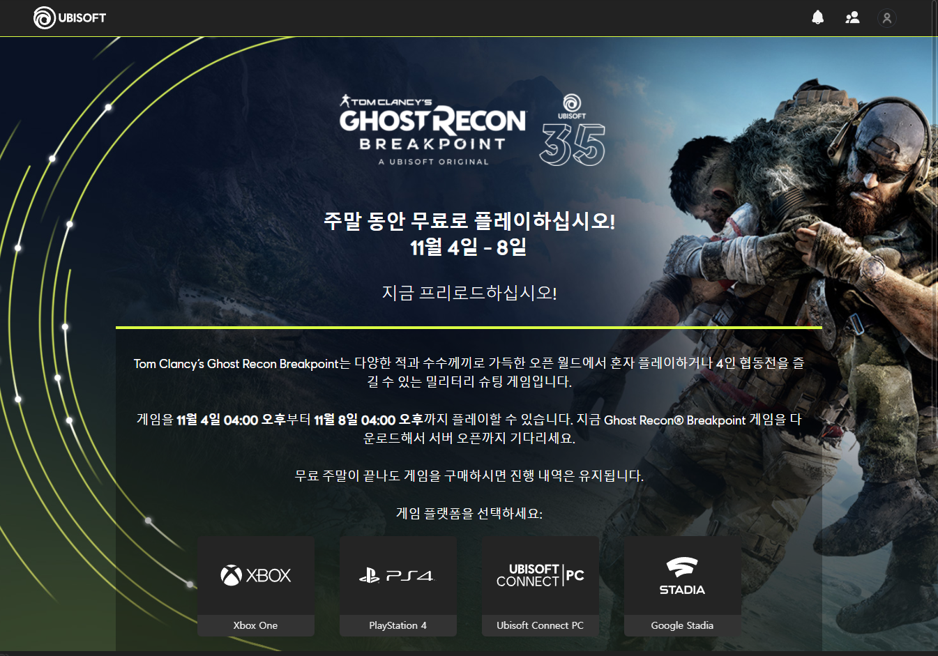 Ubisoft 금주 무료 플레이 - Tom Clancy’s Ghost Recon Breakpoint 톰 클랜시의 고스트 리콘: 브레이크 포인트 Play for Free this weekend 유비소프트