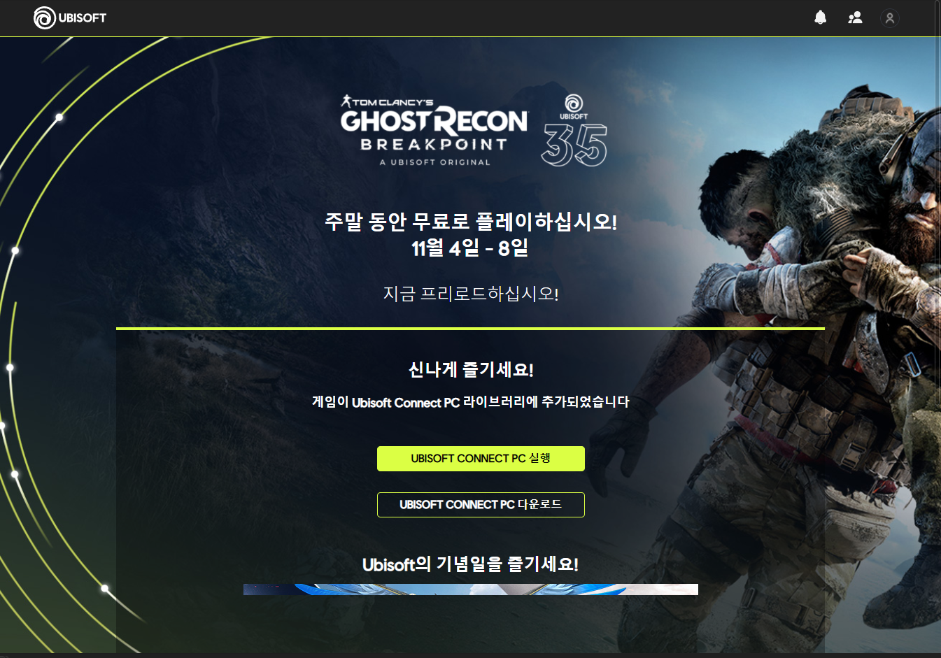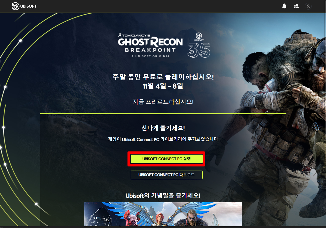 [UBISOFT CONNECT PC 실행] 버튼을 클릭해서 게임 설치 완료 후 플레이하면 됩니다