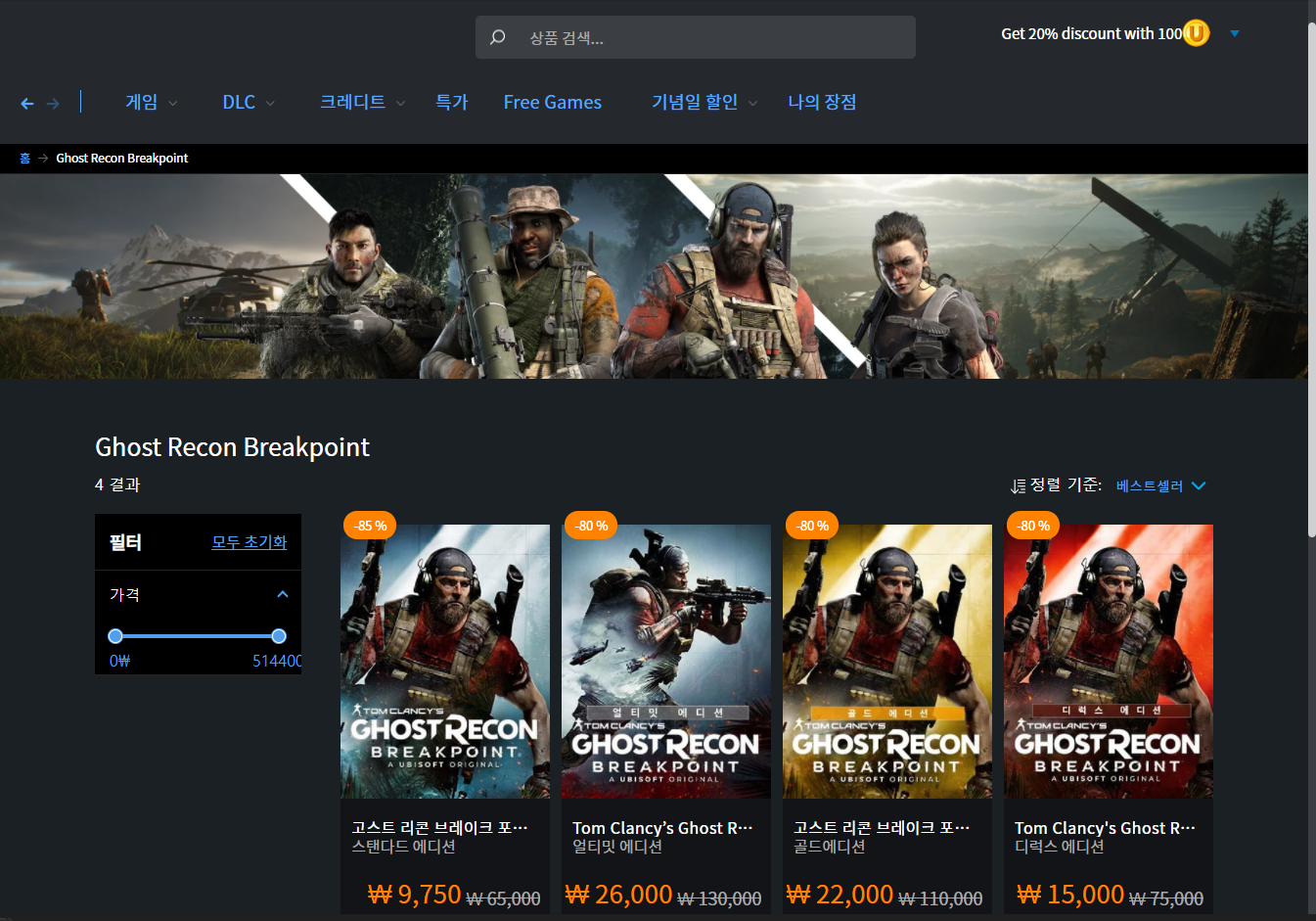 금주 게임은 "고스트 리콘: 브레이크 포인트" 입니다.