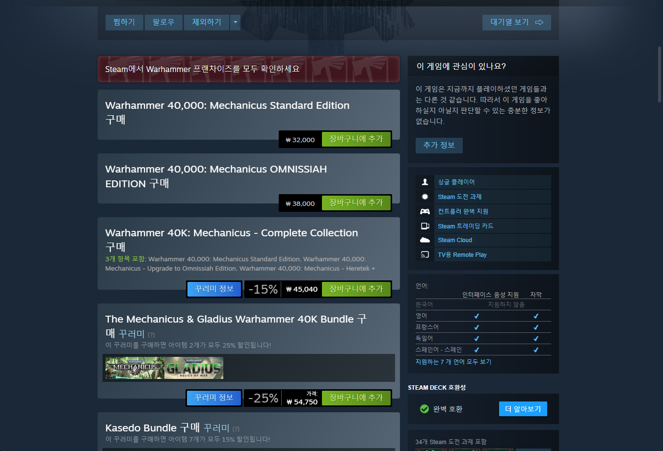 - "Warhammer 40,000: Mechanicus" 게임 보유 확인