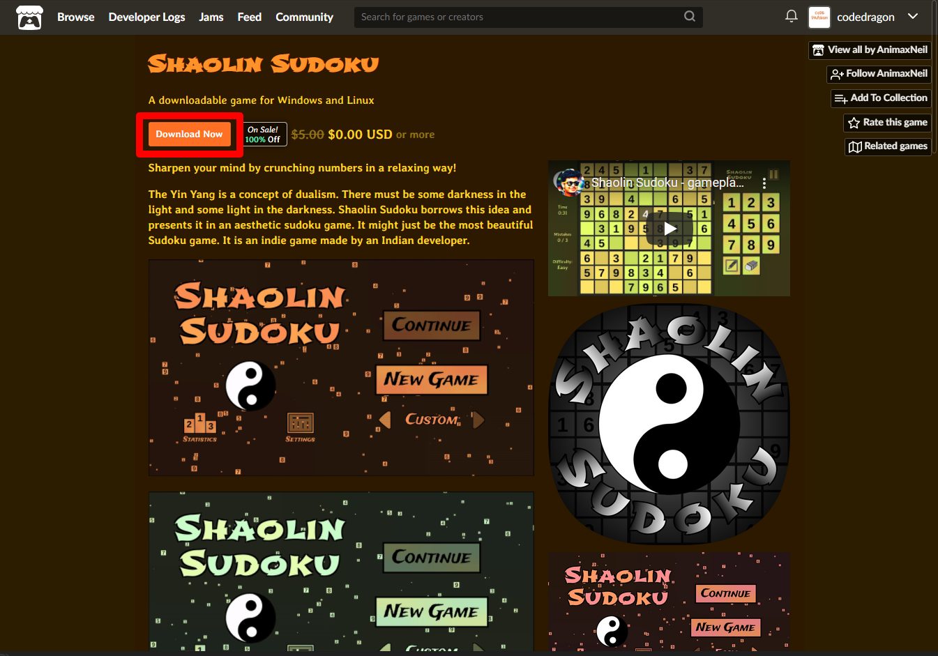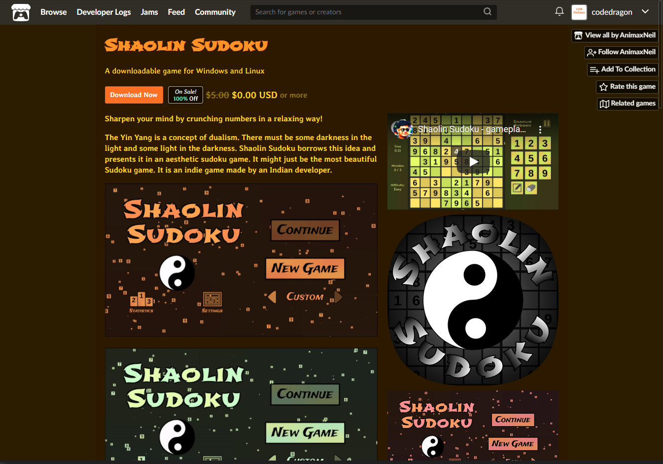 ₩5,910 -> ₩0(Free) Shaolin Sudoku 사오린 스도쿠 무료로 받기 영구소장 - itch.io 잇치 닷 아이오 한시적 무료 소장하기