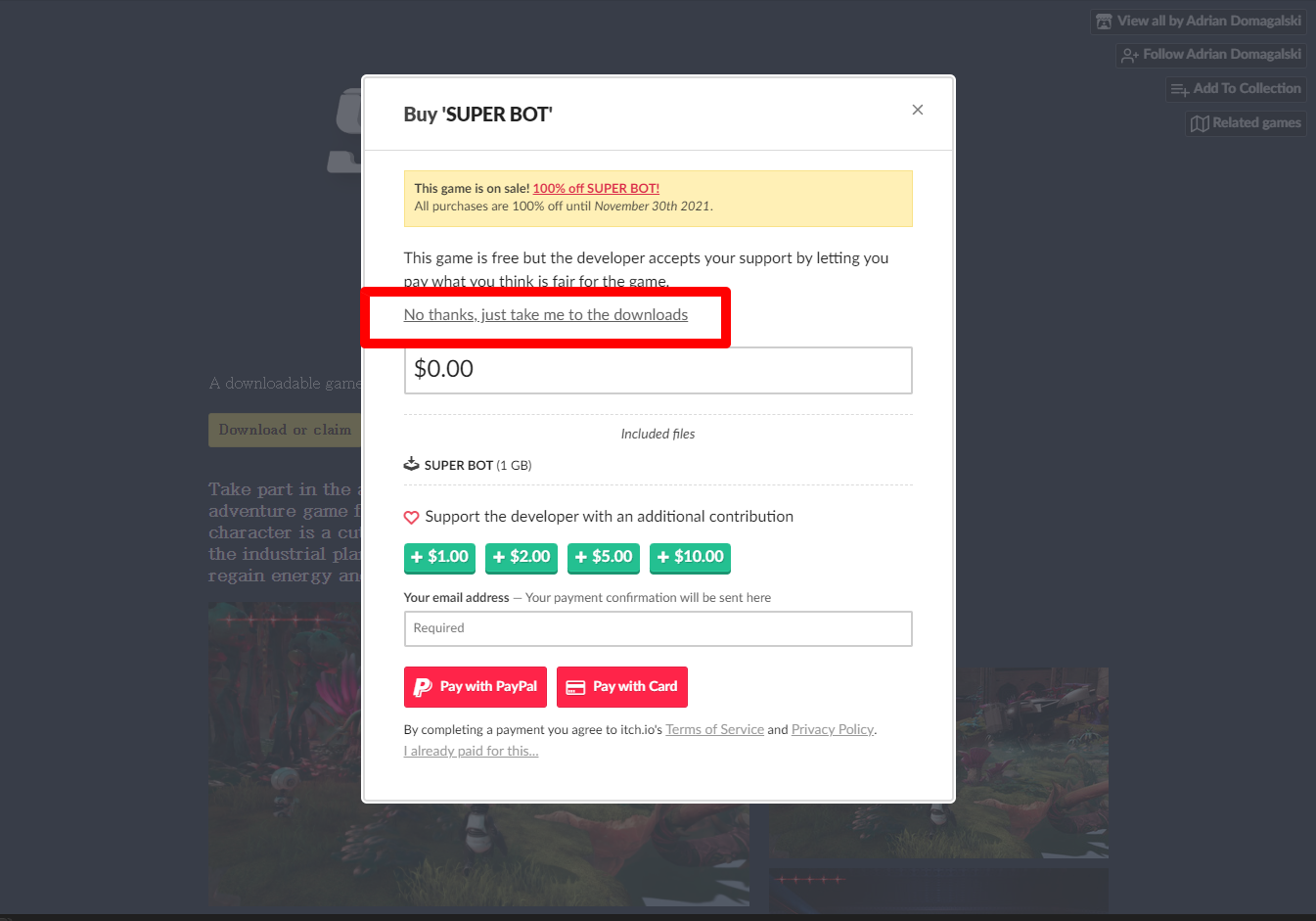 ₩5,500 -> ₩0(Free) SUPER BOT 무료로 받기 영구소장 (재등록) - itch.io 잇치 닷 아이오 한시적 무료 소장하기