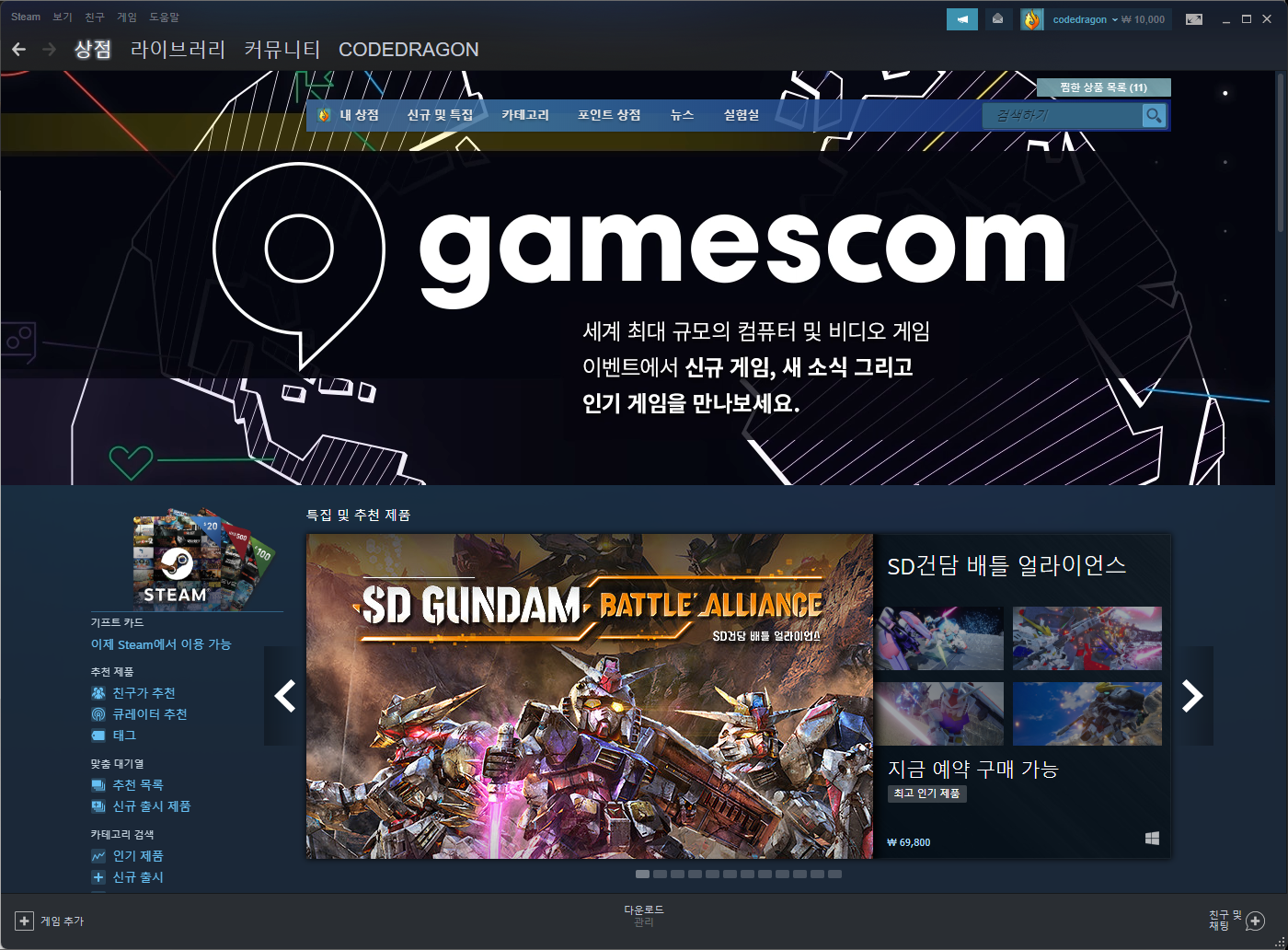 나오는 메뉴에서 [Steam에 제품 등록]을 클릭합니다.