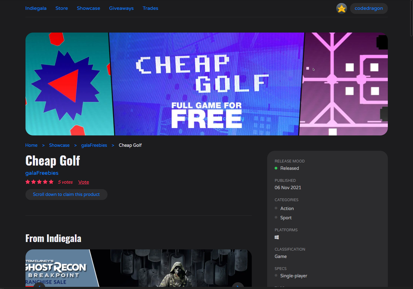 ₩5,500 -> ₩ 0(Free) Cheap Golf 무료 - 인디갈라 indiegala 무료 소장 기회 기간한정 indiegala FREE GAME, Limited time