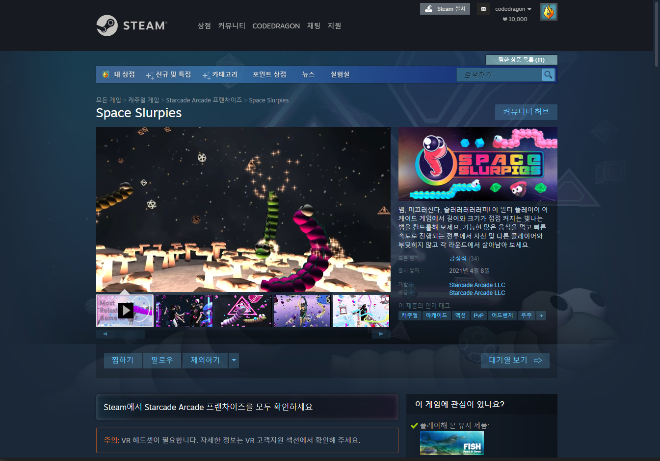 금주 게임은 "VR" 게임인 "Space Slurpies" 입니다.