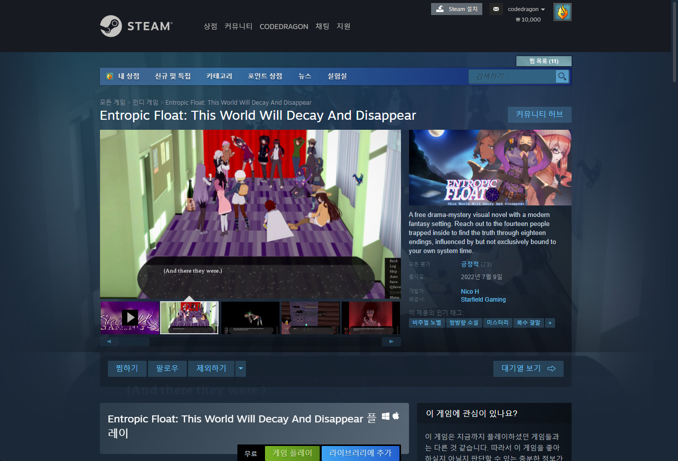 - "Entropic Float This World Will Decay And Disappear" 게임 보유 확인
