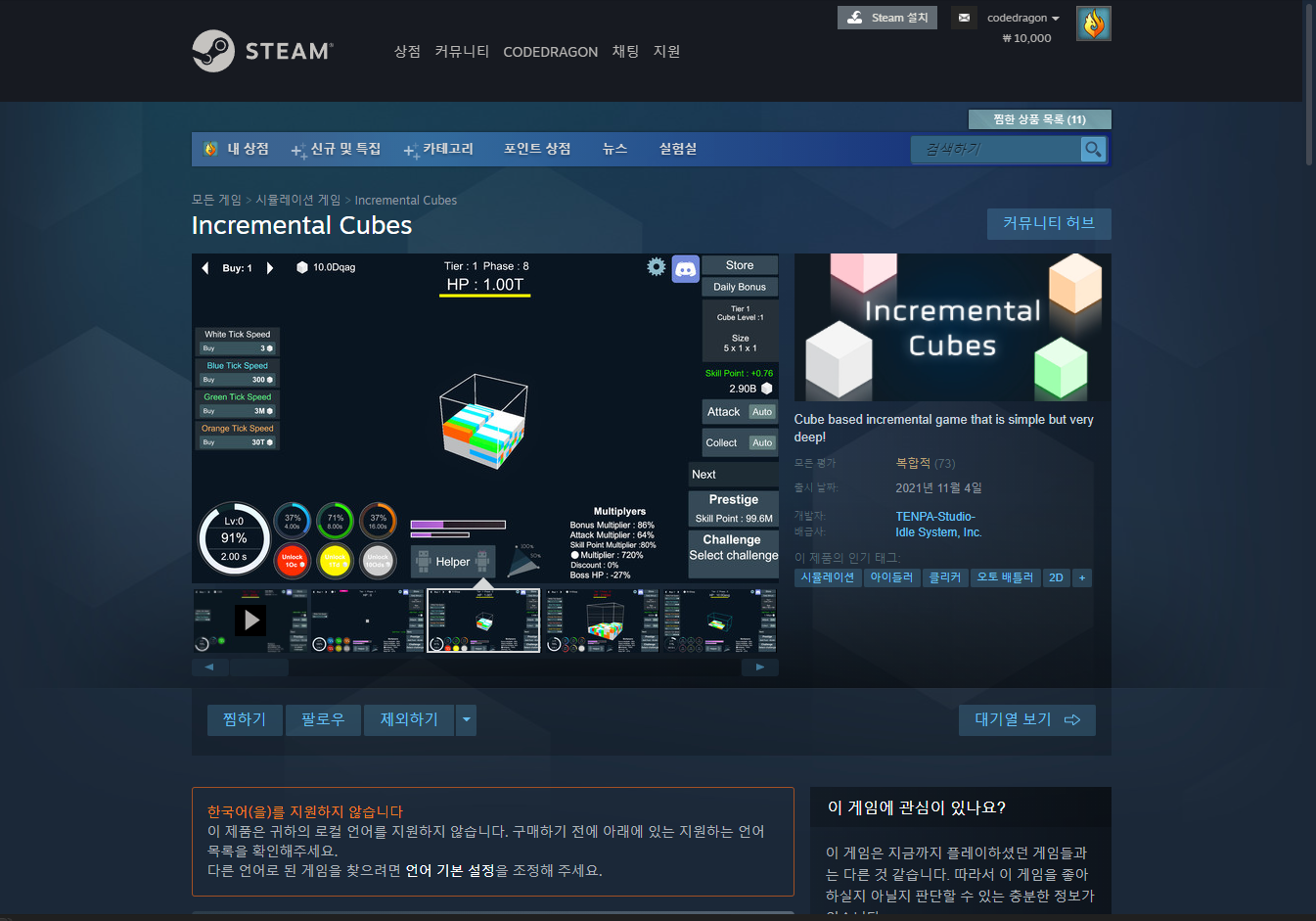 "시뮬레이션"게임인 "Incremental Cubes"입니다.