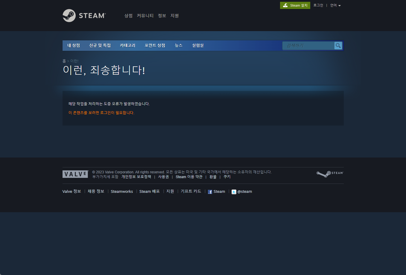 이 경고창이 나오면 먼저 스팀계정에 로그인해야 합니다.