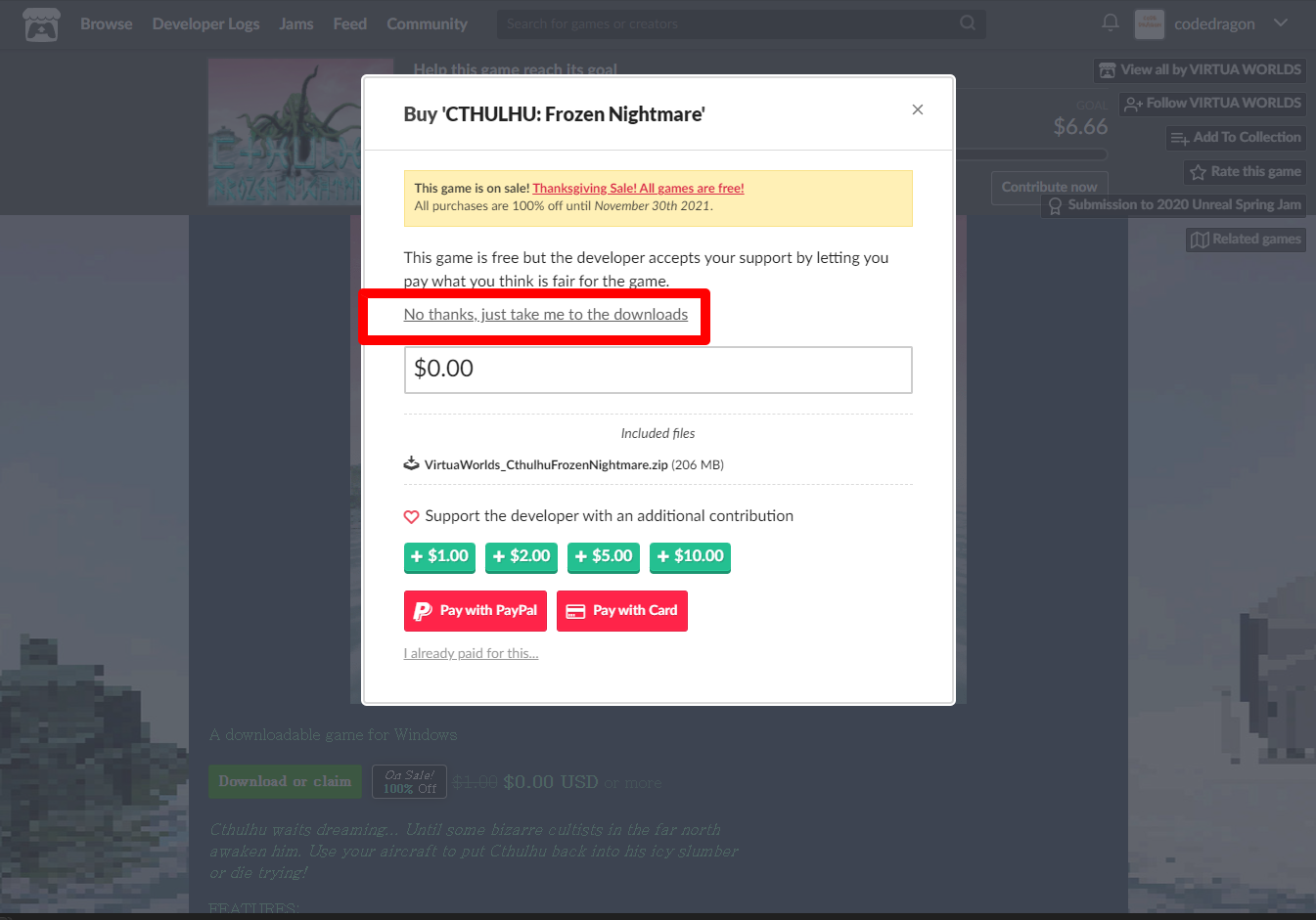"CTHULHU: Frozen Nightmare" 해당 항목에 있는 [Download] 버튼을 클릭하면 게임의 설치파일을 다운받을 수 있습니다.