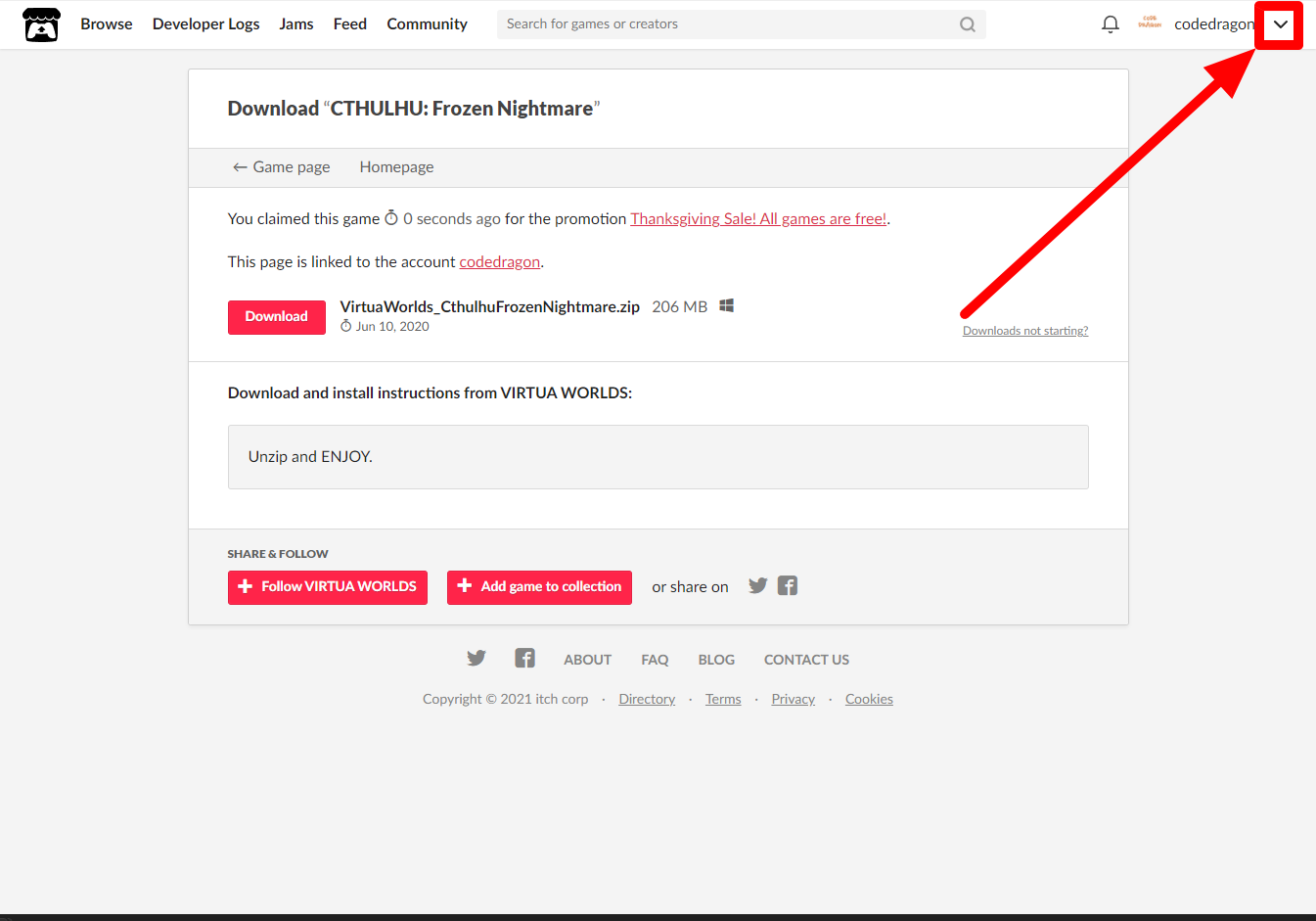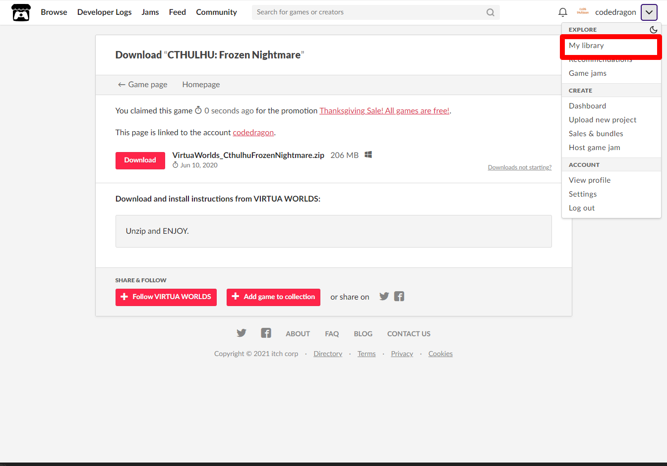 itch.io에서 받은 게임 확인해 설치파일 다운받아 보겠습니다.