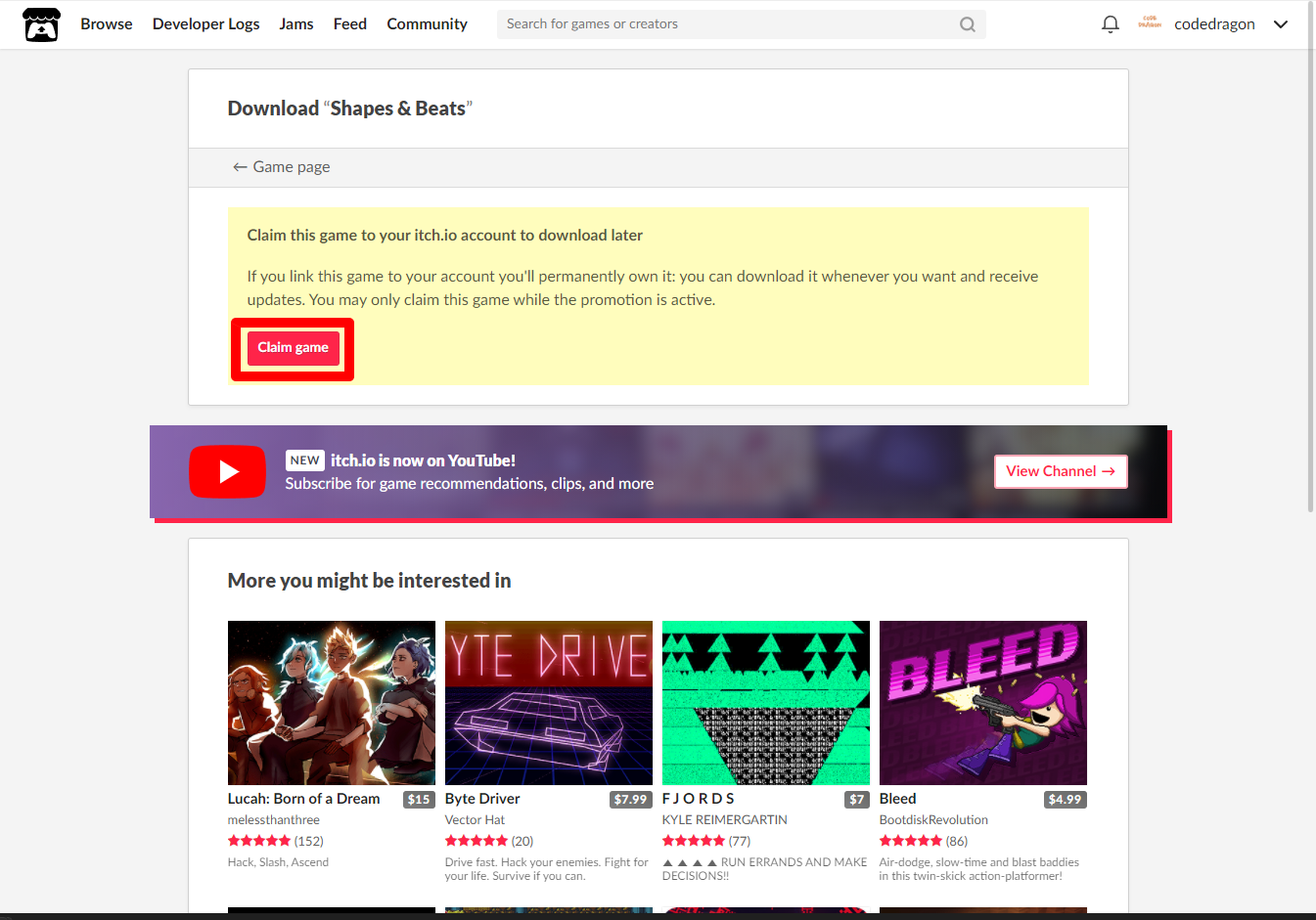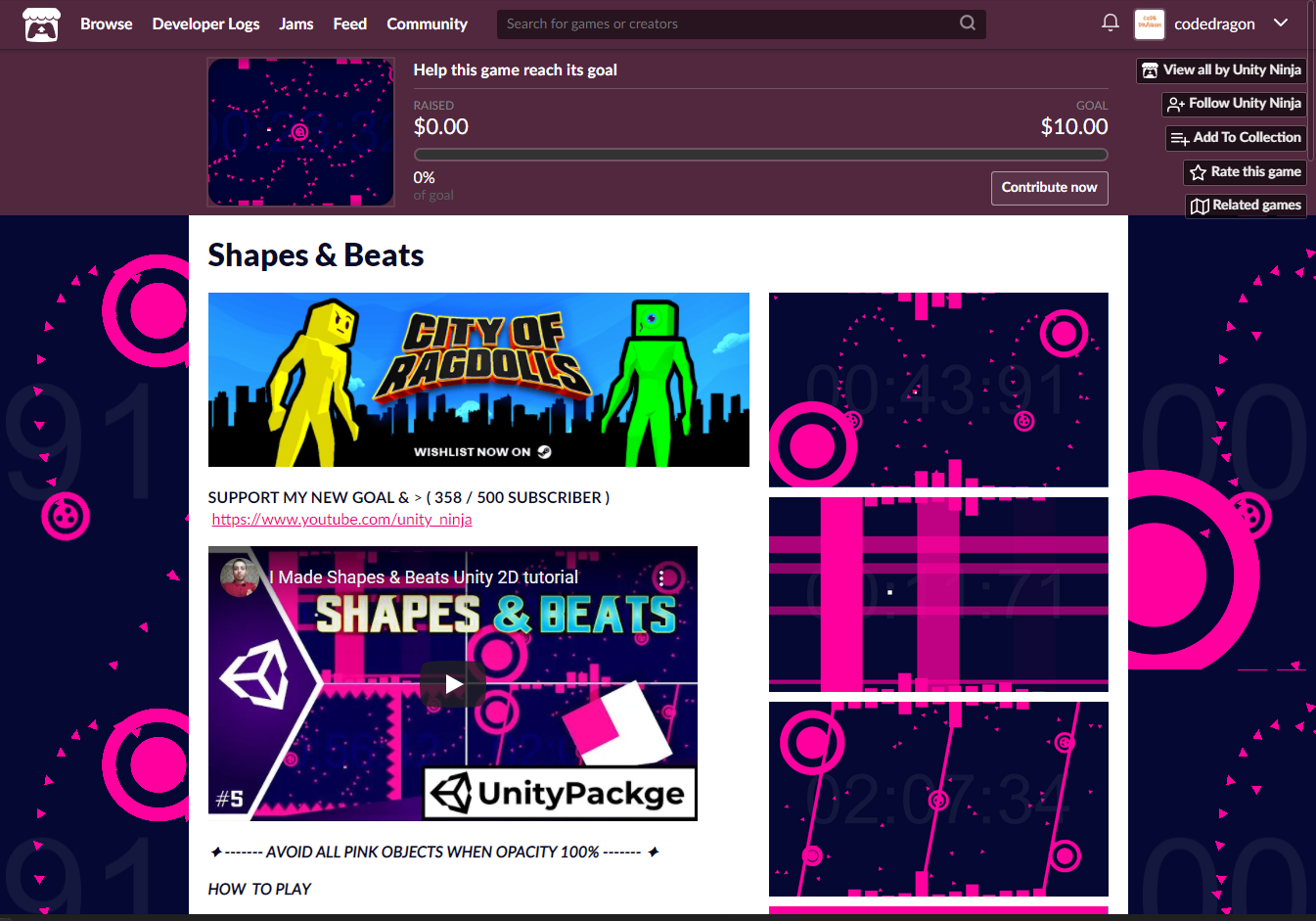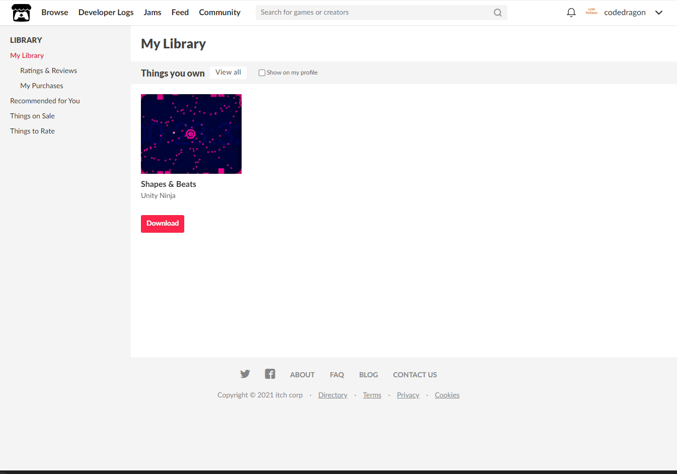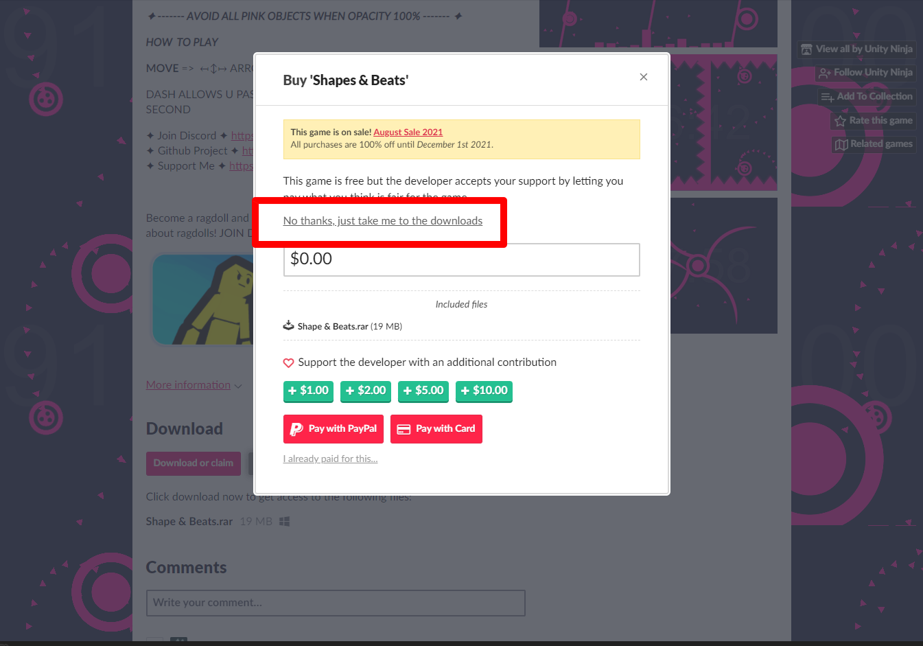 "Shapes & Beats" 해당 항목에 있는 [Download] 버튼을 클릭하면 게임의 설치파일을 다운받을 수 있습니다.