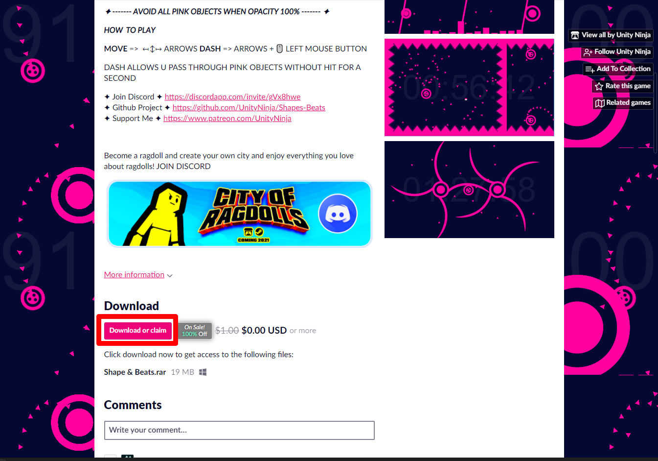 "Shapes & Beats" 해당 항목에 있는 [Download] 버튼을 클릭하면 게임의 설치파일을 다운받을 수 있습니다.