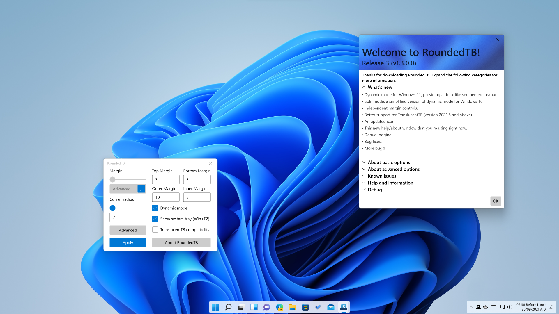 시스템 트레이 영역을 보이게 하거나 보이지않게 하고 작업표시줄의 모서리를 라운드 처리하거나 작업표시줄의 빈영역을 투명하게 하는 등의 기능을 제공합니다.